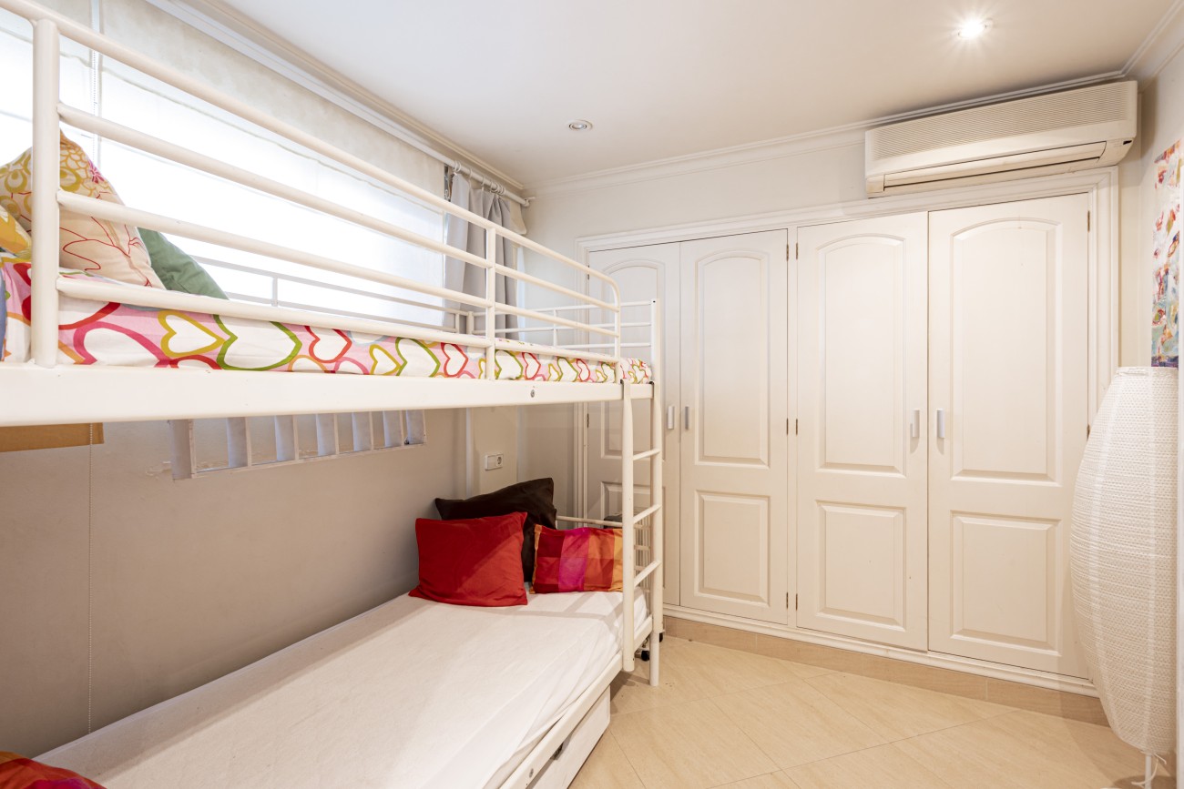 Het heeft twee slaapkamers, een gedeelde badkamer en een ruime woonkeuken met een woonkamer met grote ramen die het pand veel licht geven. Het is een hoge verdieping op het zuiden.