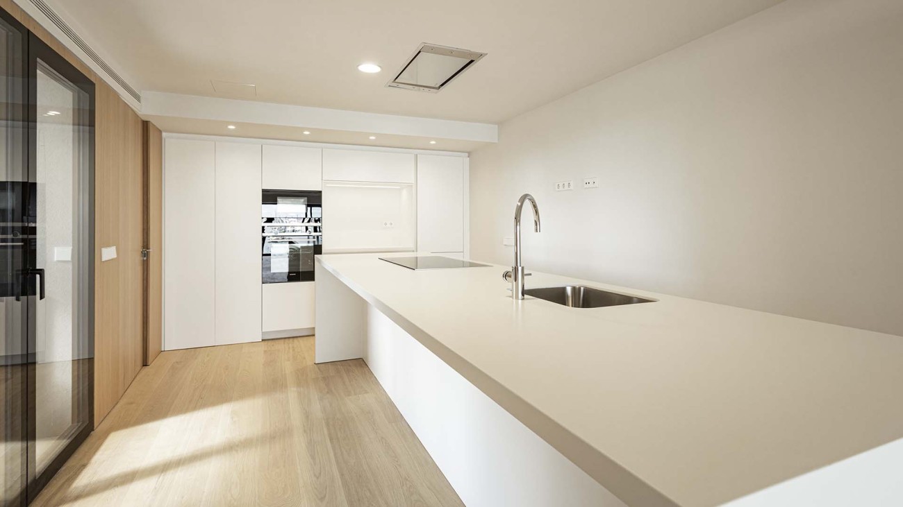 Het appartement beschikt ook over functies zoals vloerverwarming, geïntegreerde airconditioning (warm/koud), dubbele beglazing, elektronische verduisteringsgordijnen en LED-verlichting om er maar een paar te noemen.