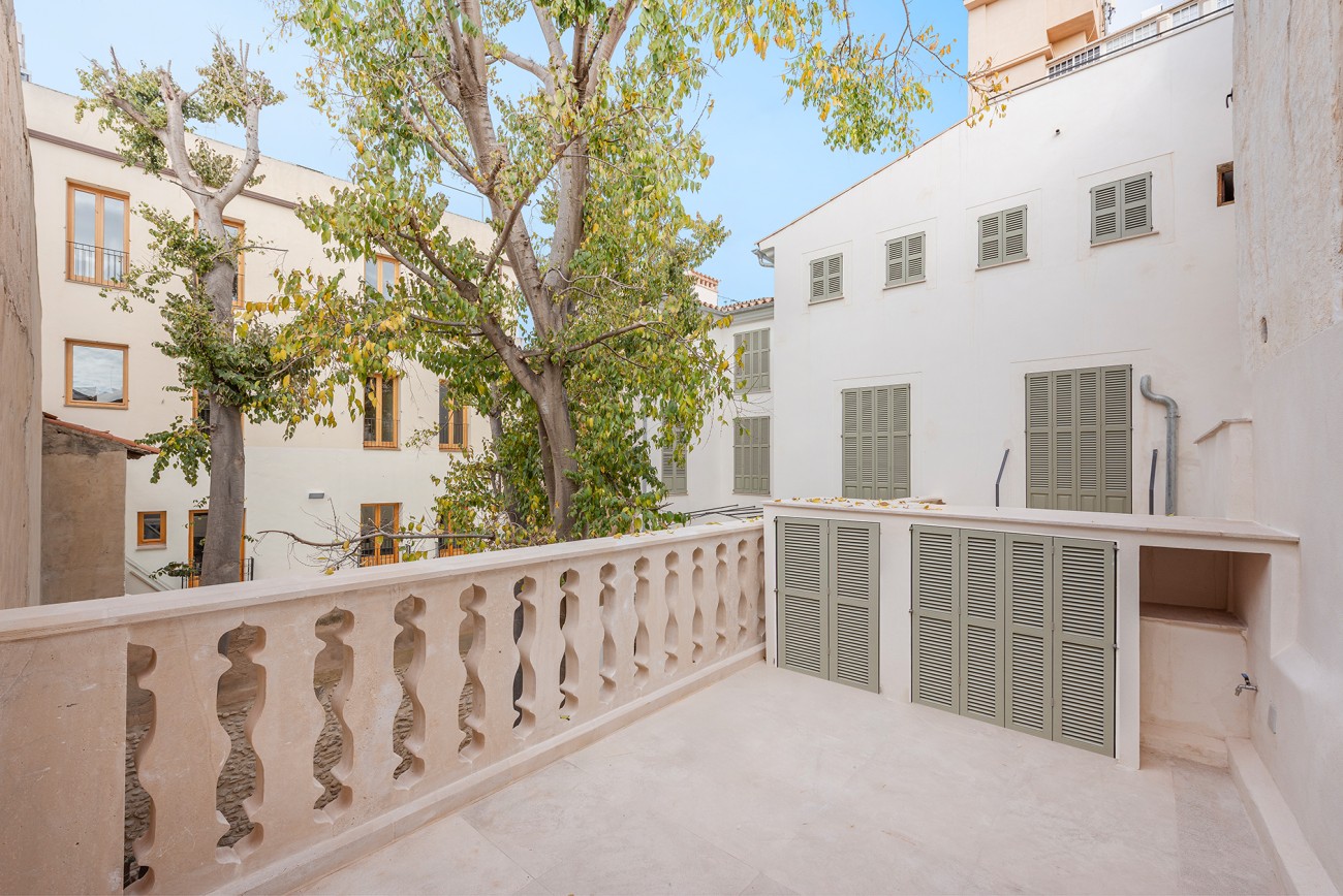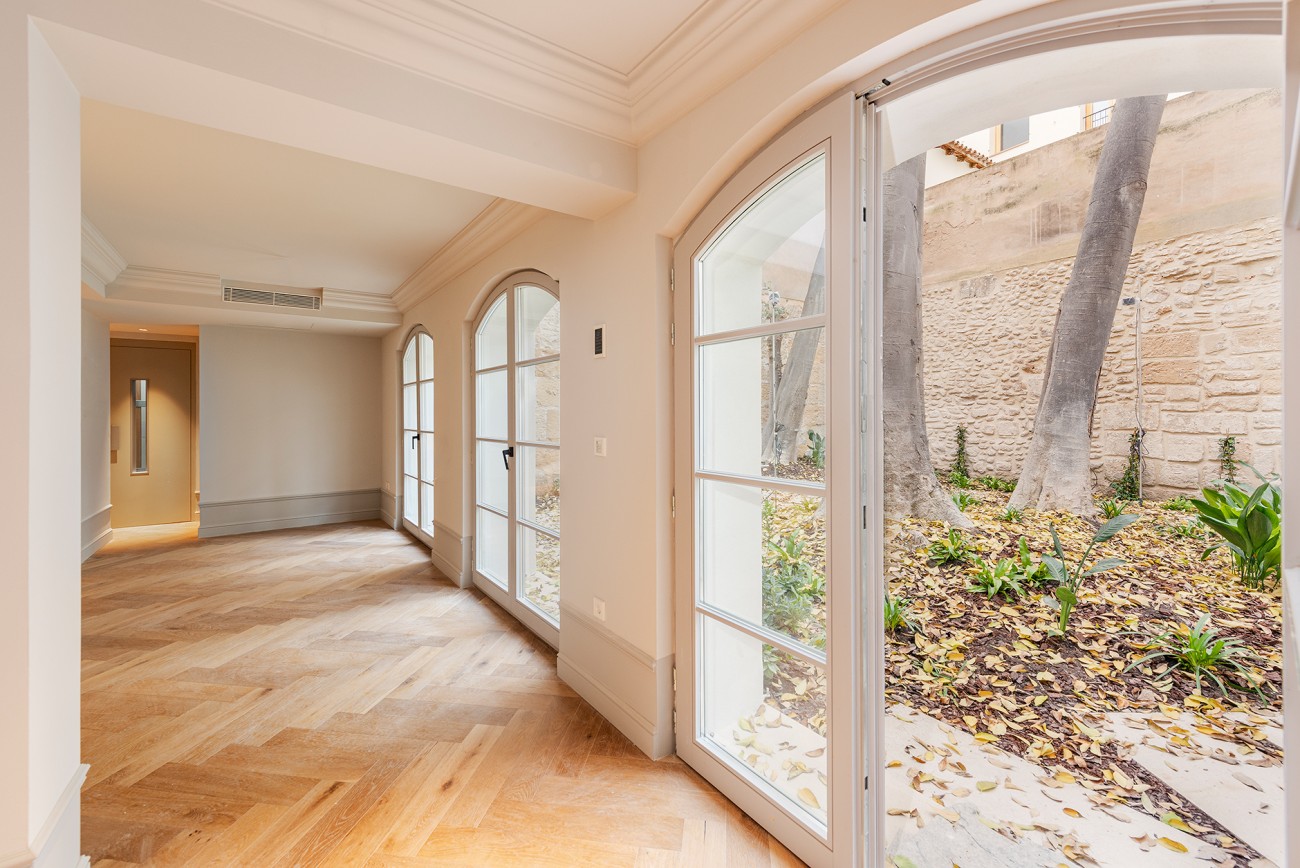 Dit chique duplex appartement op de begane grond te koop in Palma, maakt deel uit van een woonwijk op een van de meest gewilde locaties van de stad. Omgeven door het rijke karakter van historische gebouwen, geniet het appartement van een uitstekende ligging met gemakkelijke toegang tot levendige straten, culturele bezienswaardigheden en alledaagse gemakken. Binnen het complex is een serene, groene binnenplaats, een gemeenschappelijke en uitgeruste fitnessruimte en een uitnodigende groene oase die koele schaduw biedt in de zomer en verwelkomt natuurlijk licht in de winter.