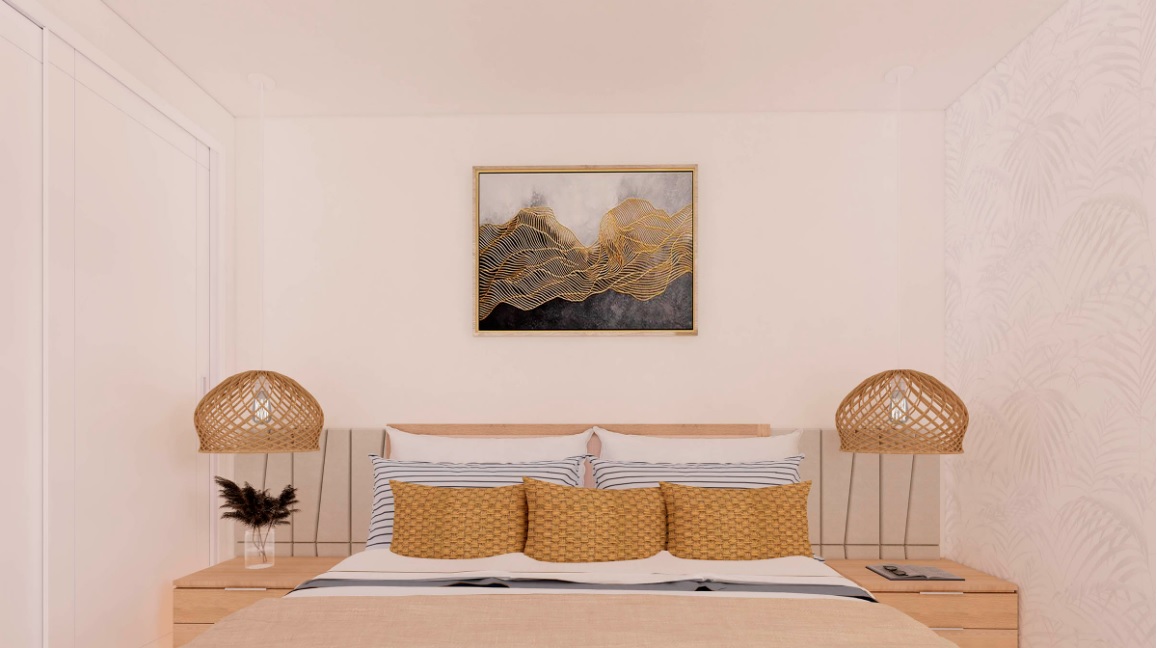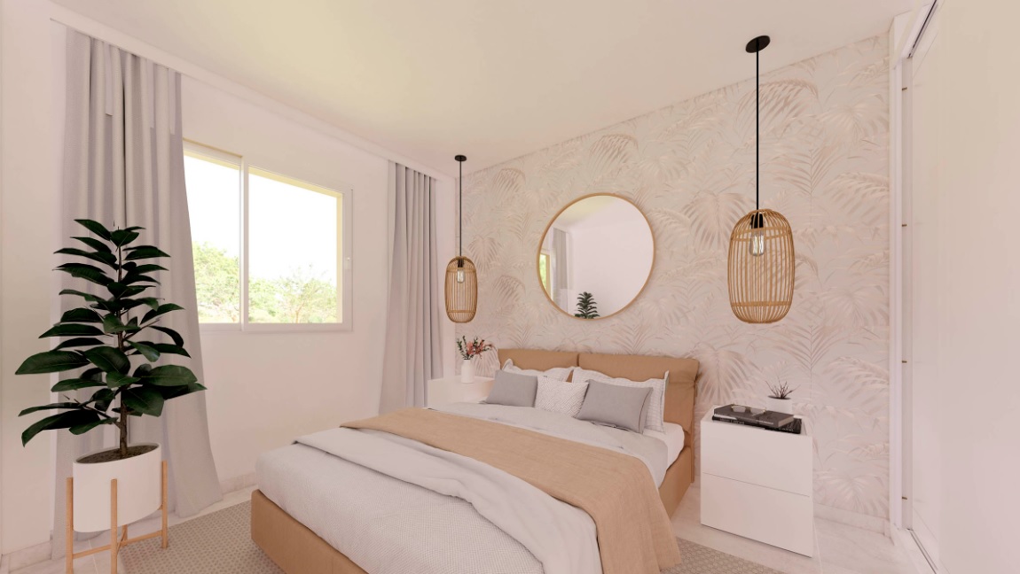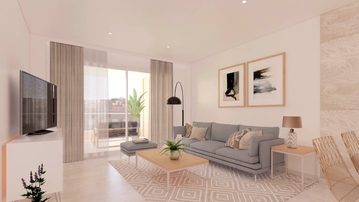 Dit lichte en uitnodigende appartement, te koop, heeft twee slaapkamers en twee badkamers, samen met een ruime woonkamer gevuld met natuurlijk licht. Het is voorzien van airconditioning en is ontworpen voor comfort gedurende het hele jaar. Het project biedt ook een gemeenschappelijk zwembad en aangelegde gebieden waar bewoners van kunnen genieten.