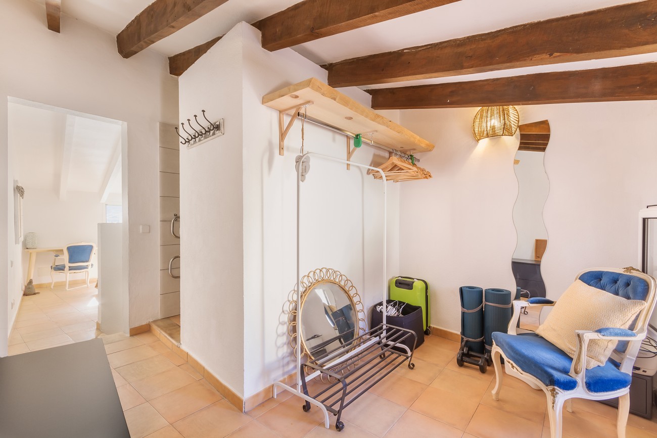 Als we naar de tweede verdieping gaan, vinden we een grote slaapkamer met directe toegang tot een royaal terras, dat voldoende ruimte biedt voor een bubbelbad of een dompelbad, evenals een fantastisch uitzicht op de iconische Puig de Maria.