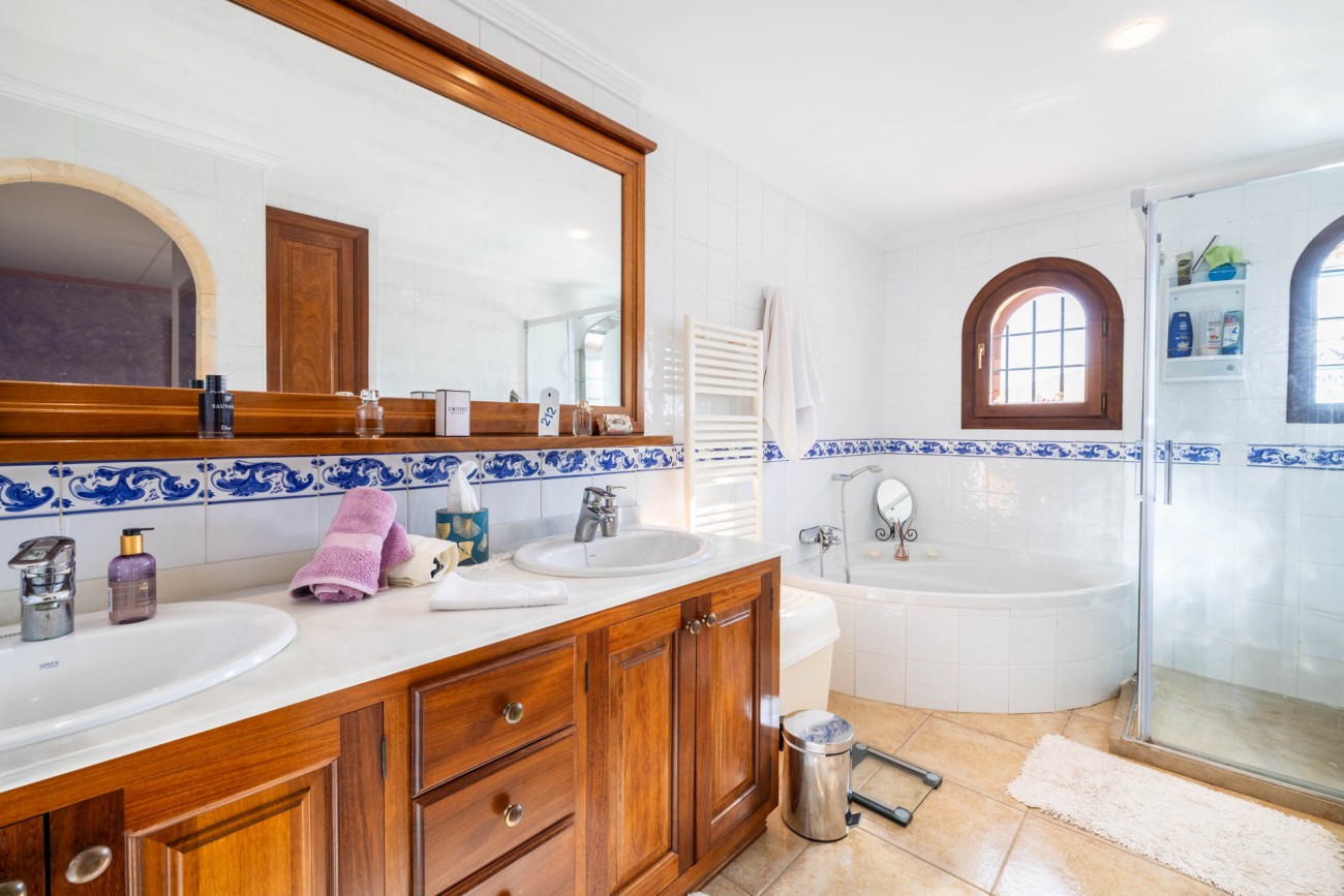 De twee verdiepingen tellende finca staat op een groot perceel van ongeveer 8.970 m2, met een enorm gazon en panoramisch uitzicht op de bergen en het platteland.