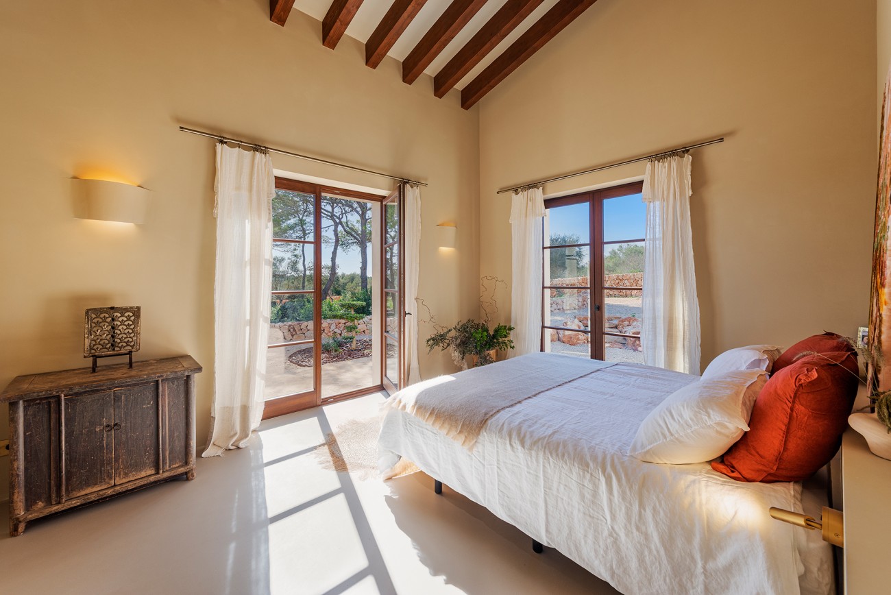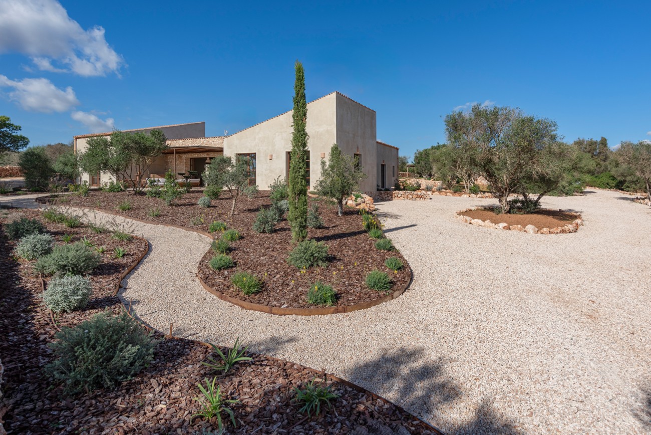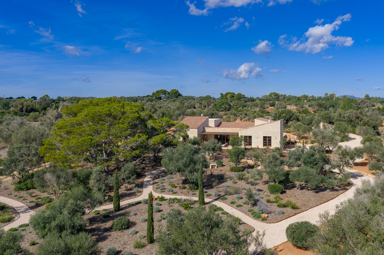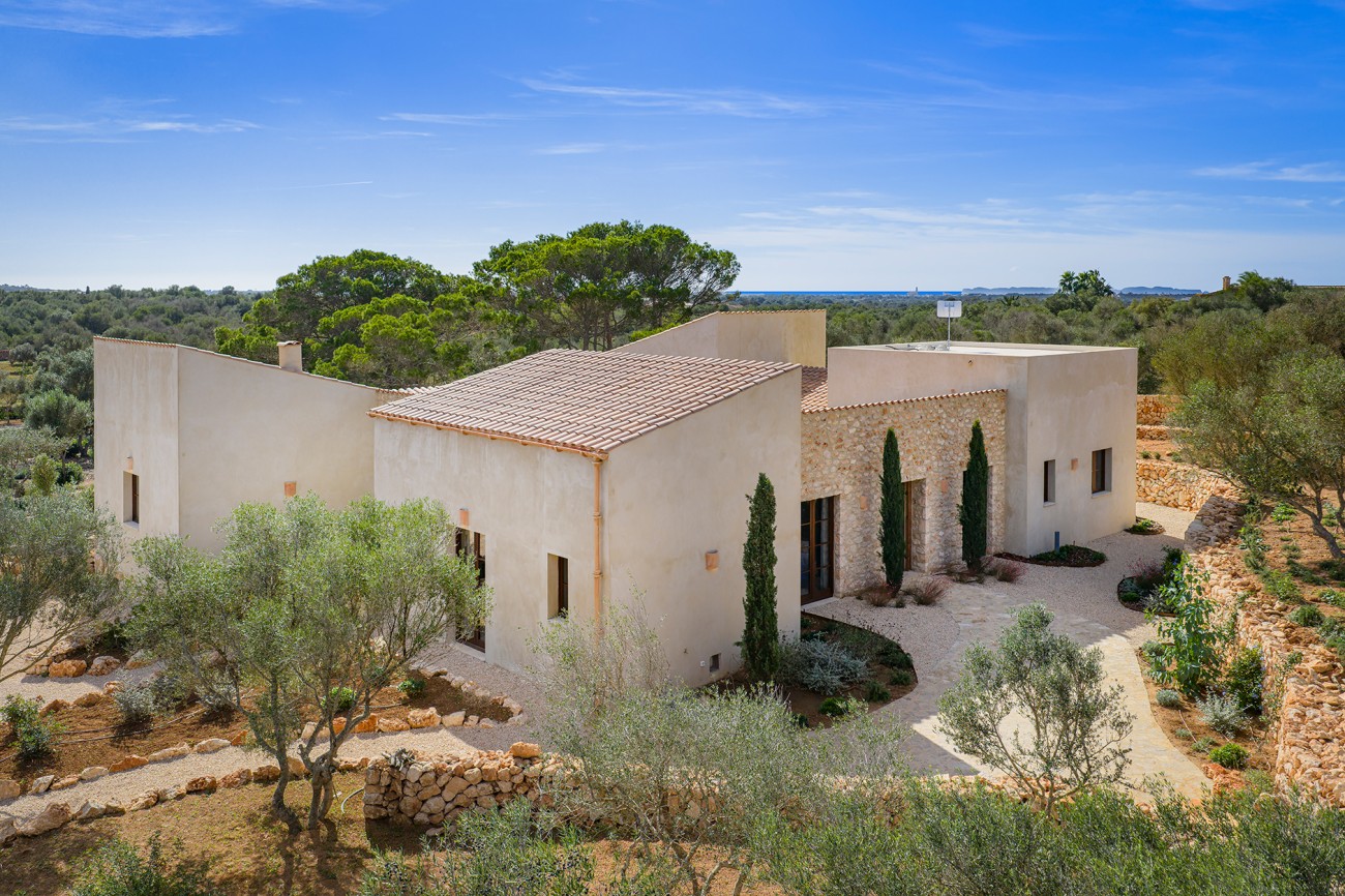 Deze nieuw gebouwde mediterrane finca biedt volledige privacy en ligt toch op slechts een klein eindje rijden van het dorp. Ontworpen op één niveau en voltooid in 2025, combineert het pand tijdloze eilandcharme met hedendaags comfort. De zuidoostelijke oriëntatie vult de interieurs met zacht natuurlijk licht en creëert een serene en elegante woonsfeer omringd door olijfgaarden en open velden.