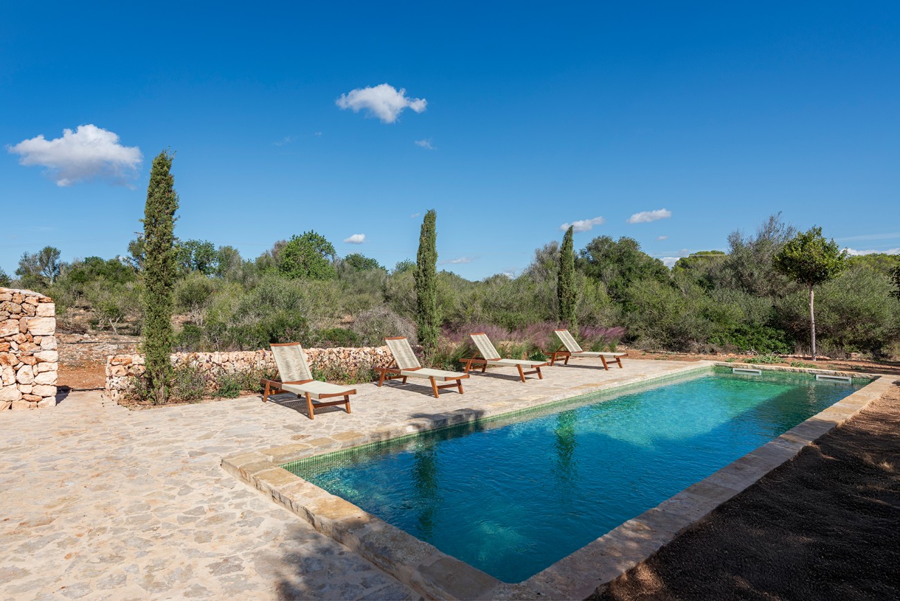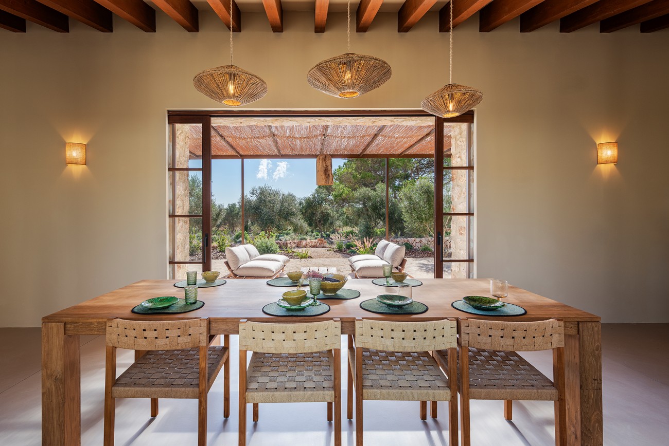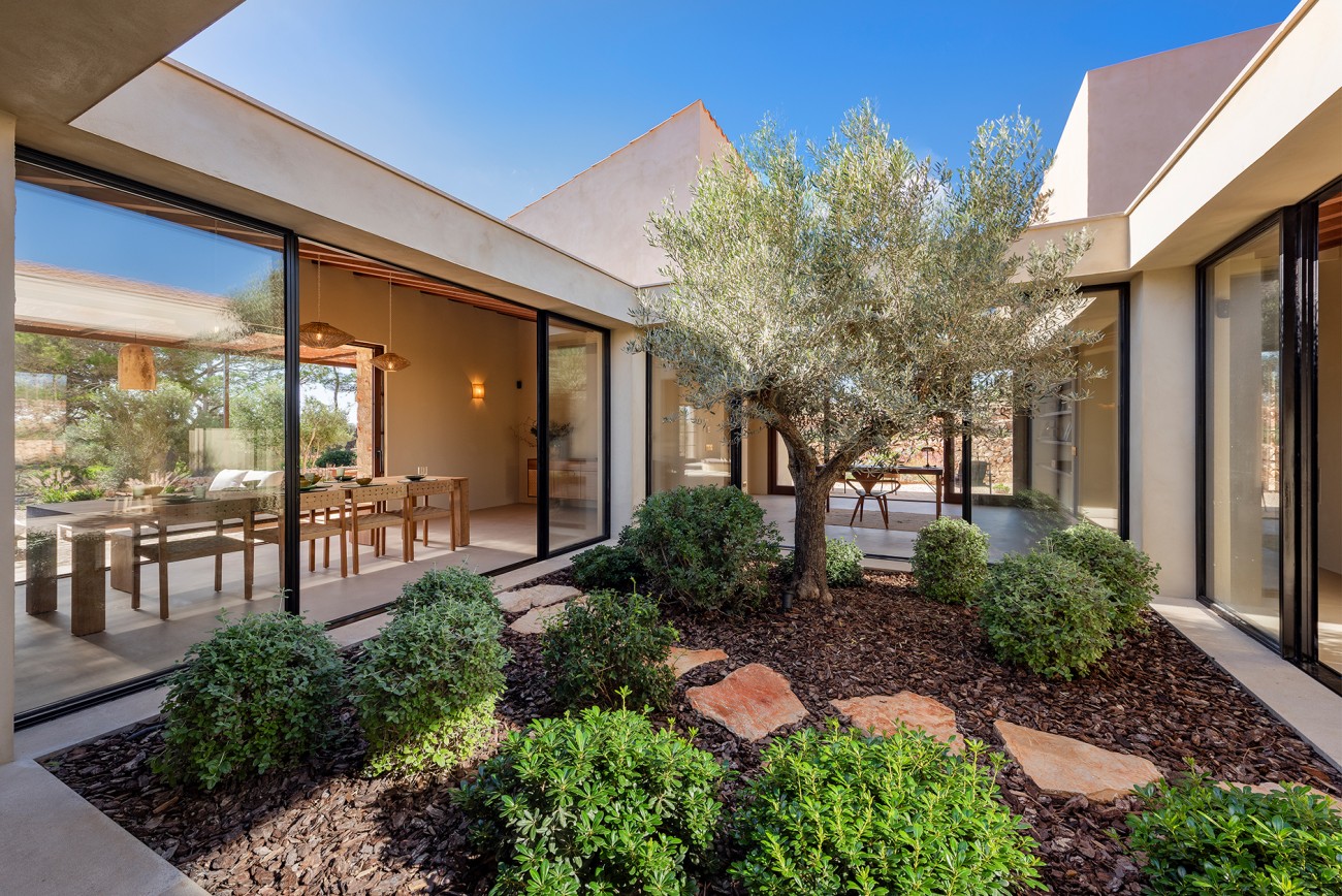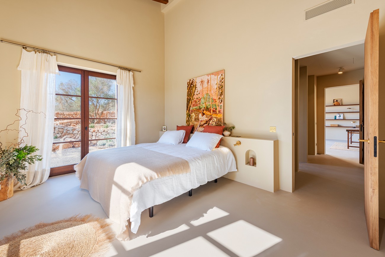 Deze nieuw gebouwde mediterrane finca biedt volledige privacy en ligt toch op slechts een klein eindje rijden van het dorp. Ontworpen op één niveau en voltooid in 2025, combineert het pand tijdloze eilandcharme met hedendaags comfort. De zuidoostelijke oriëntatie vult de interieurs met zacht natuurlijk licht en creëert een serene en elegante woonsfeer omringd door olijfgaarden en open velden.