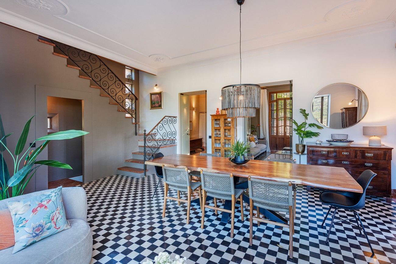 De woning beschikt over zeven ruime slaapkamers en drie elegant ingerichte badkamers, zorgvuldig ontworpen om zowel familie als gasten te huisvesten. Een opvallend kenmerk is de ultramoderne lift, die naadloze, drempelloze toegang biedt van het tuinniveau naar het uitgestrekte dakterras – een zeldzame luxe in traditionele Mallorcaanse landgoederen. Voor investeerders die op zoek zijn naar nog meer mogelijkheden is er ook de optie om een aangrenzend huis te kopen dat extra ontwikkelingspotentieel biedt.