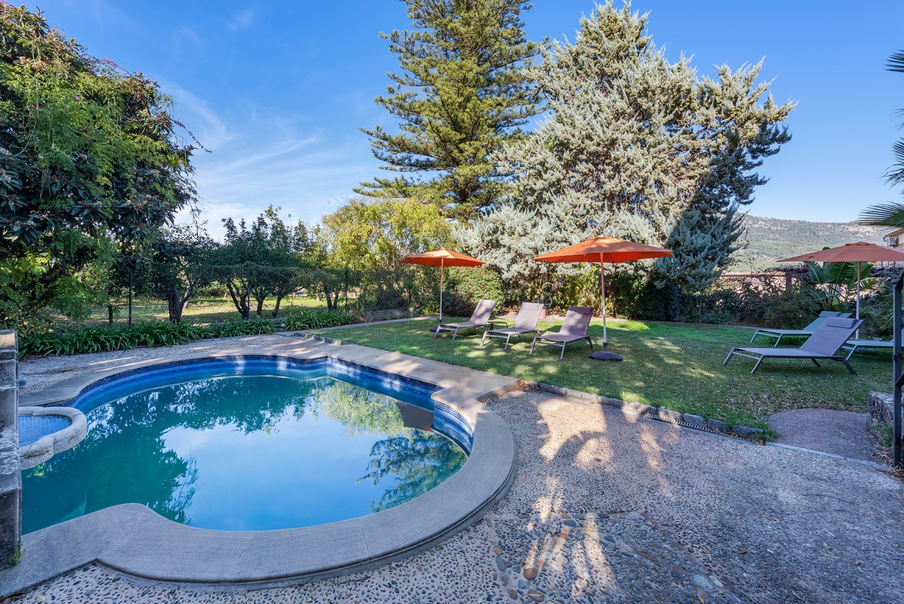 Buiten nodigen een zonovergoten zwembad, schaduwrijke terrassen en meerdere loungeruimtes uit tot zowel ontspanning als entertainment in de open lucht. De omringende boomgaard is een waar hoogtepunt, vol met citrusvruchten, perziken, vijgen, appels, peren en zelfs papaja’s – het hele jaar door in overvloed. De watervoorziening is verzekerd door gedocumenteerde waterrechten uit de bergen en twee speciale waterdeposito’s, een voor irrigatie en een om te drinken.