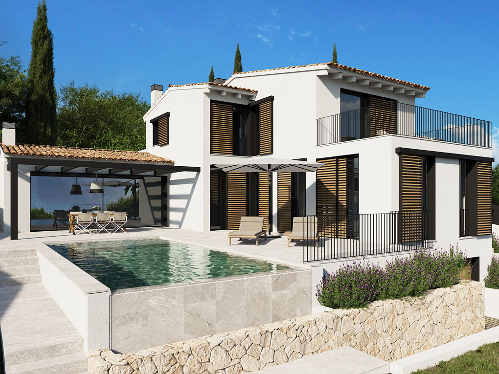 Deze exclusieve nieuwbouwvilla ligt in het rustige dorpje Esporles, omgeven door een van de meest authentieke en natuurlijke landschappen van Mallorca. De villa combineert hedendaagse elegantie met modern comfort en biedt een vredig toevluchtsoord op slechts een klein eindje rijden van Palma.