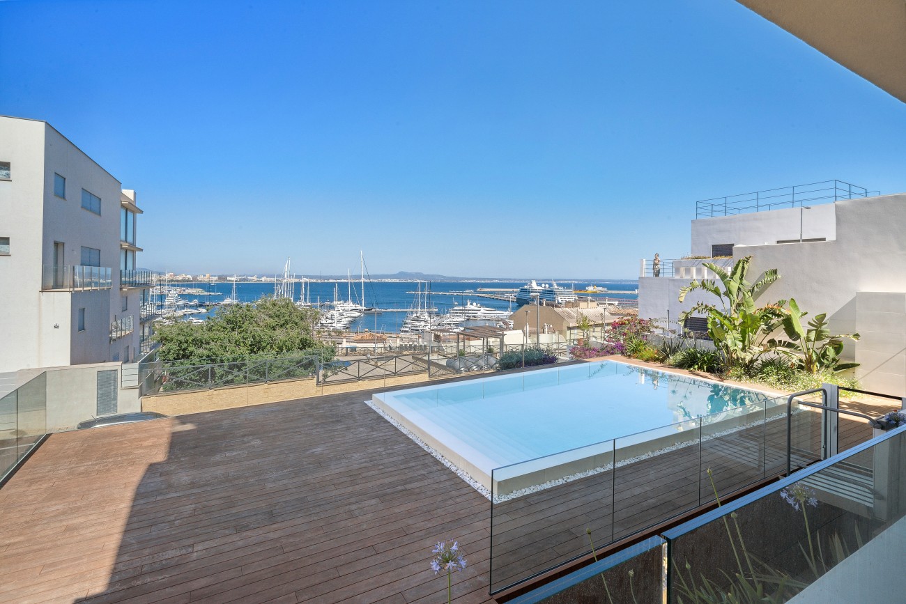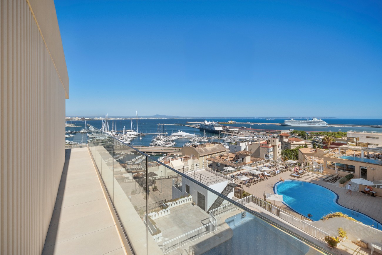 De bewoners maken deel uit van een exclusief complex met slechts negen hoogwaardige appartementen en hebben toegang tot een overloopzwembad, een zonneterras en een wellnessruimte met sauna en fitnessruimte. Het penthouse biedt een lichte open woon- en eetruimte met een designkeuken en eiland, een master suite met eigen badkamer en inloopkast, twee extra slaapkamers en een gedeelde badkamer. Uitgestrekte terrassen nodigen uit tot ontspannen buitenleven met panoramisch uitzicht over Palma en de Middellandse Zee.
