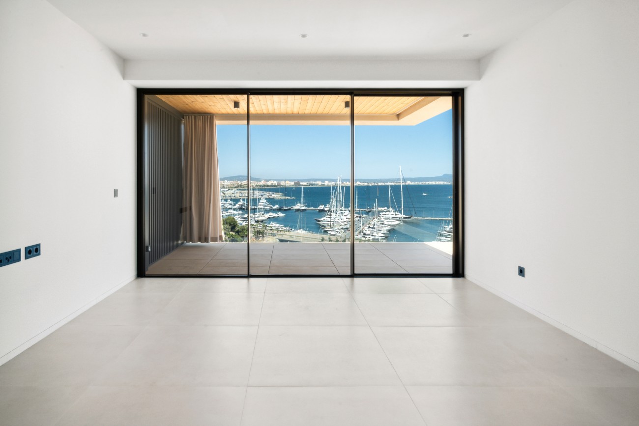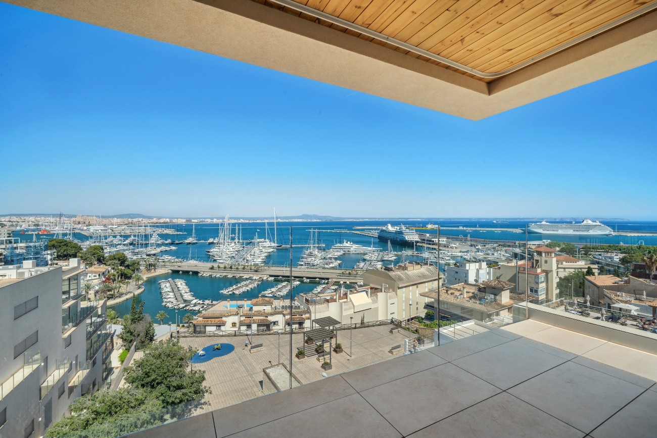 Dit luxe nieuwbouw penthouse is te koop in Bonanova, een verhoogde en prestigieuze wijk van Palma. De woning ligt boven de haven en biedt een adembenemend uitzicht over de zee, de haven en de historische skyline van de stad, waaronder de iconische kathedraal La Seu.