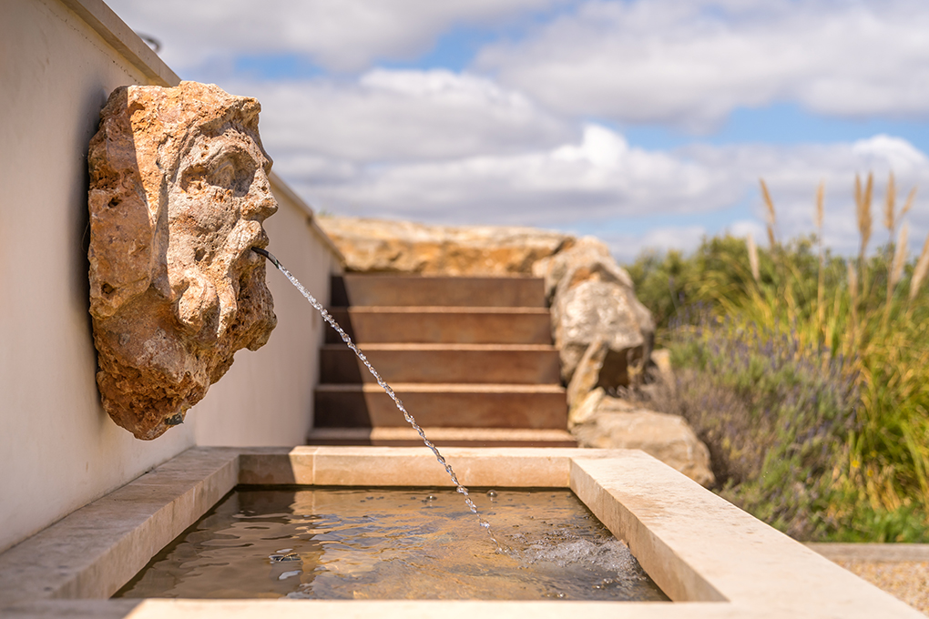 Buiten zijn er prachtig aangelegde tuinen, verschillende terrassen, ligweiden en een zwembad van ongeveer 15 x 3,5 m.