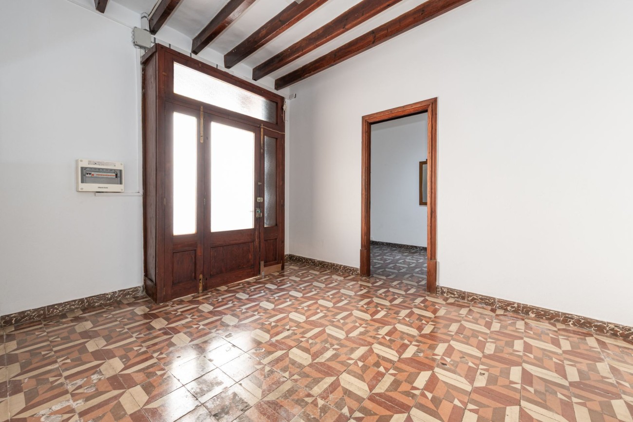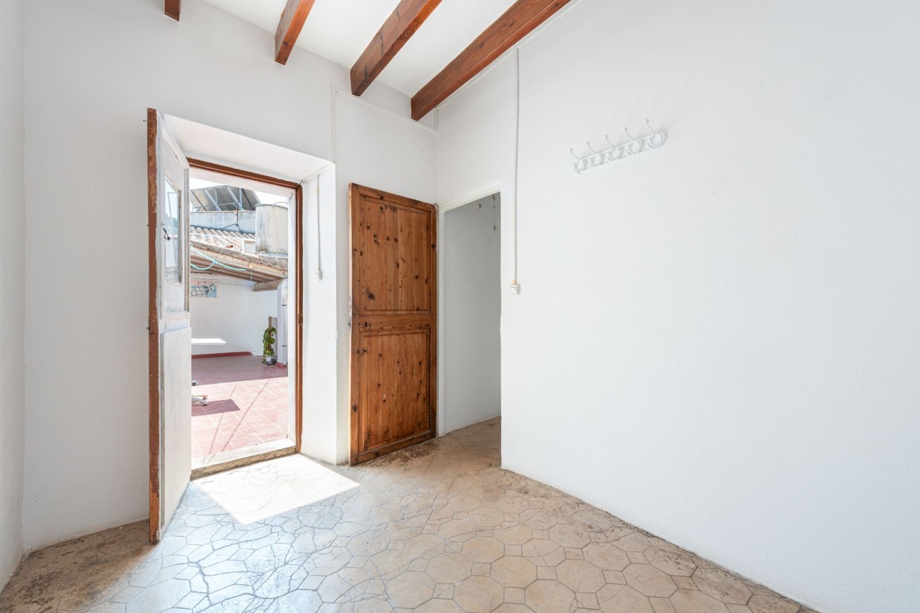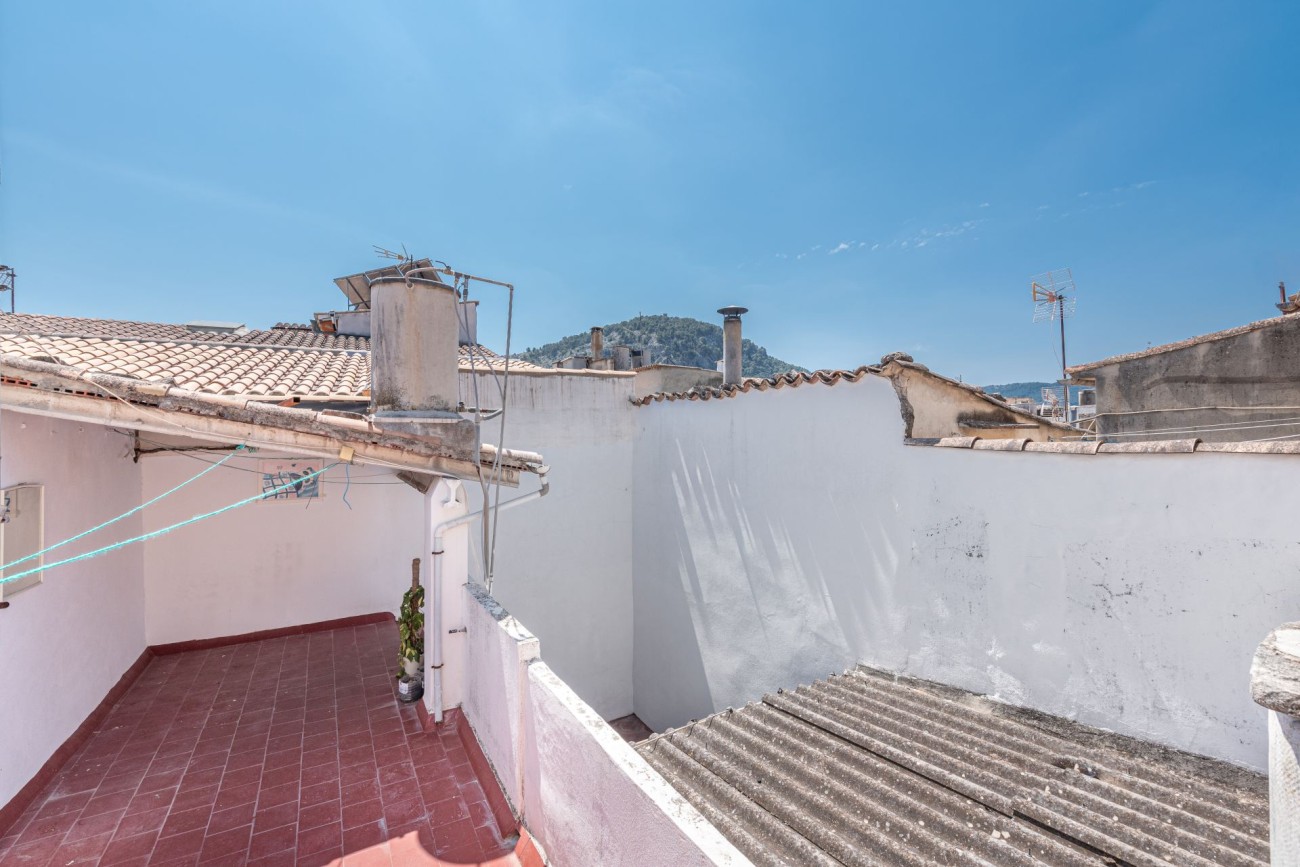 Charmant dorpshuis in Mallorquinse stijl te koop in Pollensa, gelegen op slechts vijf minuten lopen van het centrale plein. Deze traditionele woning heeft originele houten balken, een open haard en een uitnodigende patio.