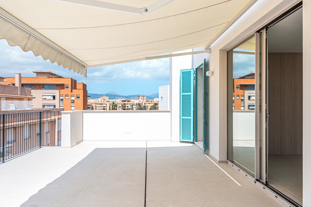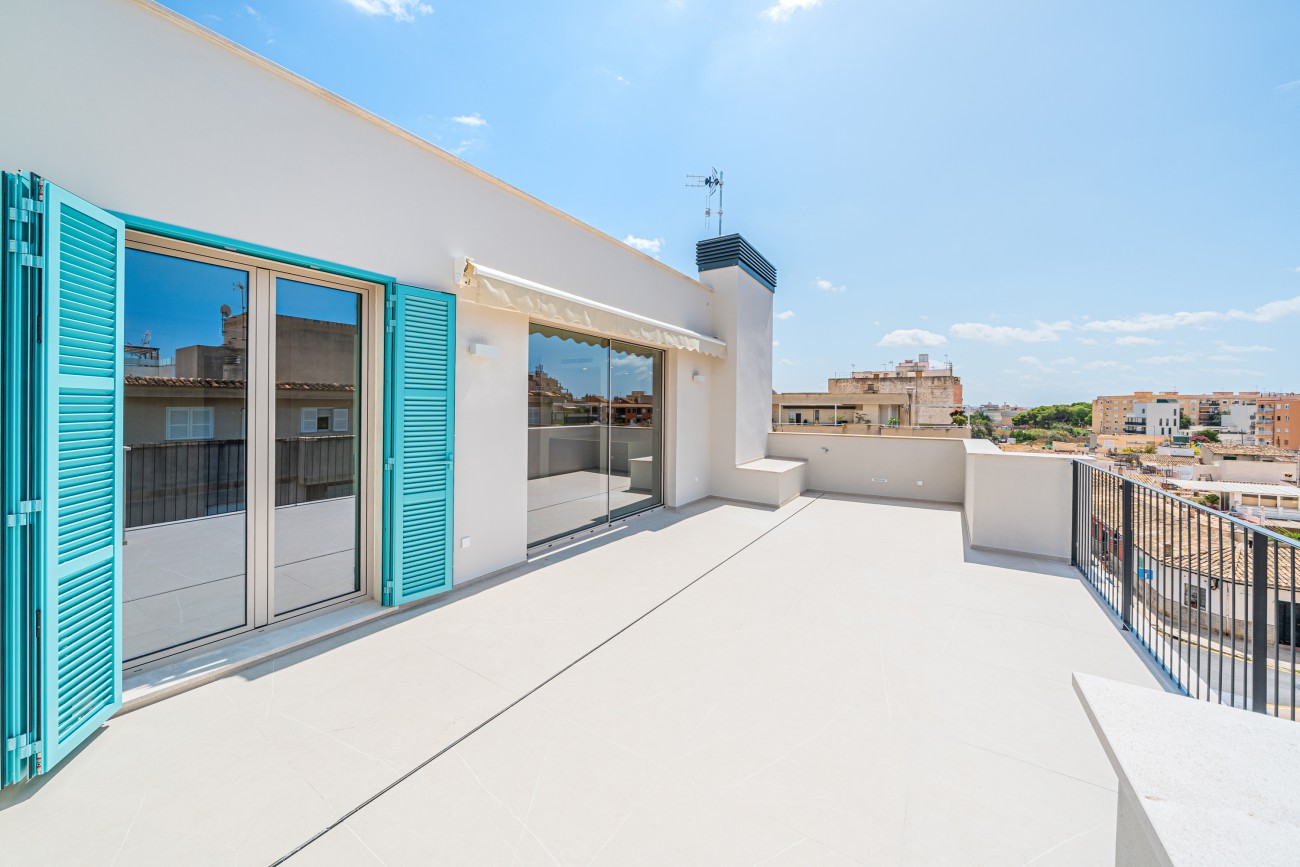 Dit nieuw gebouwde duplex penthouse ligt op slechts 400 meter van de zee in de gewilde wijk Portixol/Molinar van Palma de Mallorca en biedt een uitzonderlijke levensstijl in een van de meest gewilde kustwijken van het eiland. Deze woning op de bovenste verdieping, die deel uitmaakt van een exclusief project van slechts vier woningen, combineert privacy met eigentijdse elegantie en wordt eind juni 2025 opgeleverd. De ligging op het zuiden zorgt voor lichte, zonovergoten interieurs en een open uitzicht.