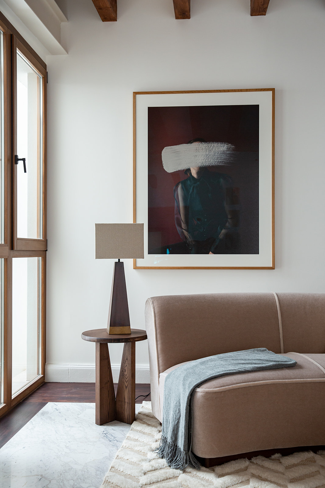 Op de benedenverdieping heeft de voorkant van het huis een ruime, lichte woonkamer met originele tegelvloeren, houten balken en twee balkons met uitzicht op de straat.