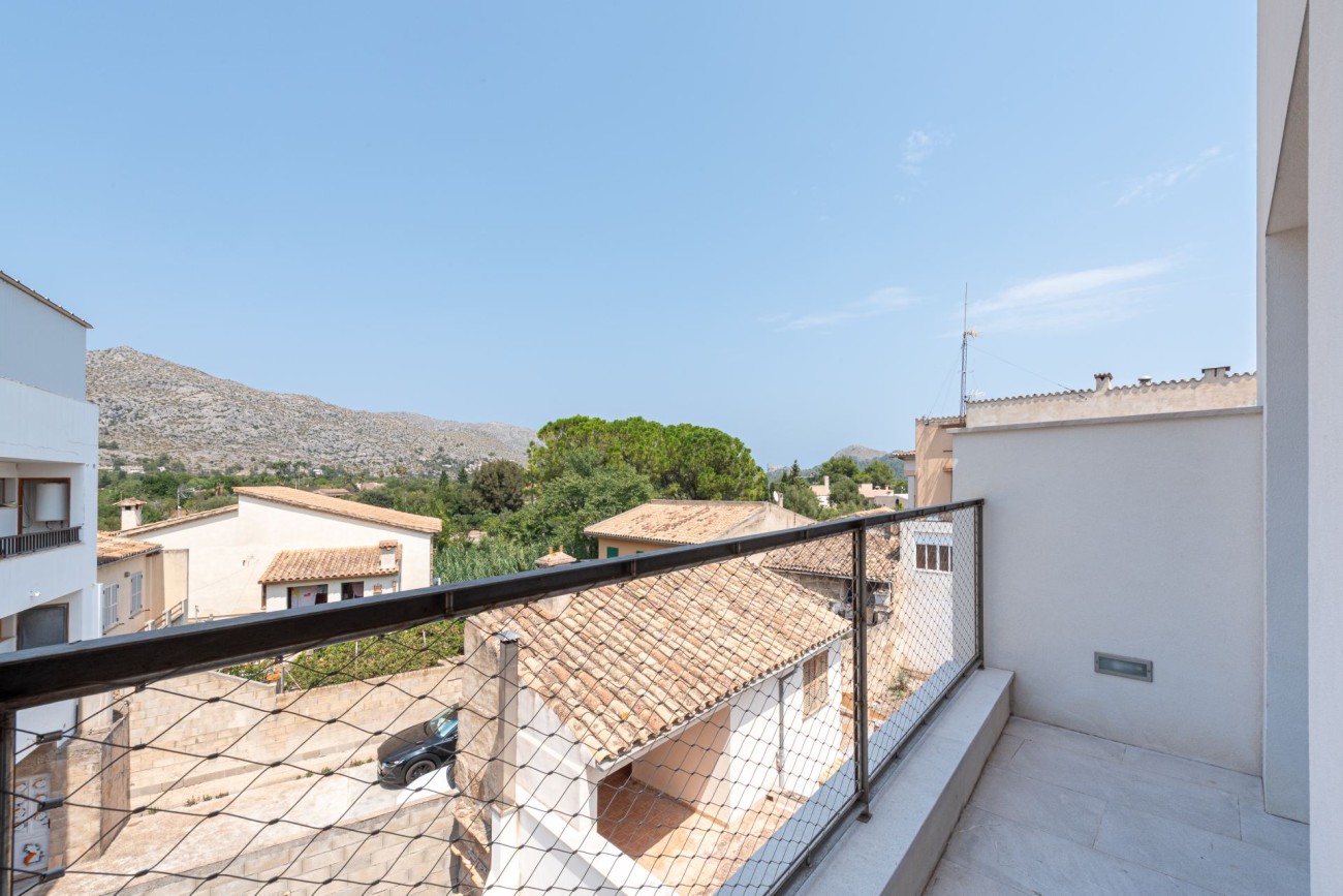 Dit prachtig ontworpen Passiefhuis, dat nu wordt aangeboden, ligt in het hart van het historische Pollença, op een steenworp afstand van de iconische Romeinse brug. Gebouwd in 2021 met een sterke focus op duurzaamheid, comfort en welzijn, biedt het een moderne, gezonde leefomgeving in een van de meest charmante stadjes van Mallorca.
