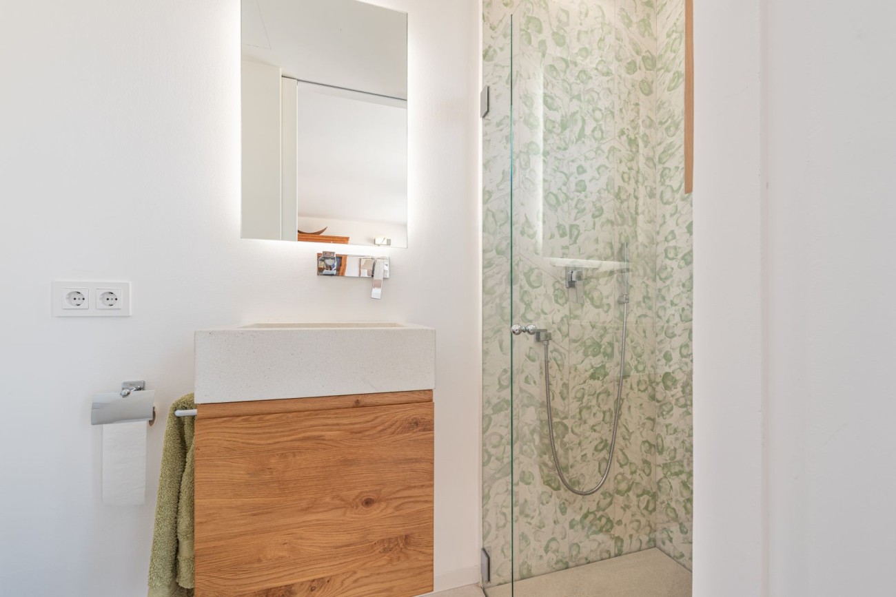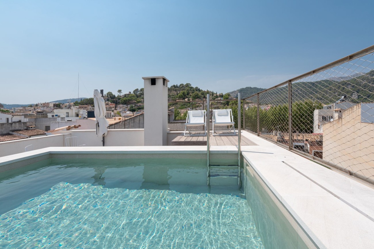 Dit prachtig ontworpen Passiefhuis, dat nu wordt aangeboden, ligt in het hart van het historische Pollença, op een steenworp afstand van de iconische Romeinse brug. Gebouwd in 2021 met een sterke focus op duurzaamheid, comfort en welzijn, biedt het een moderne, gezonde leefomgeving in een van de meest charmante stadjes van Mallorca.