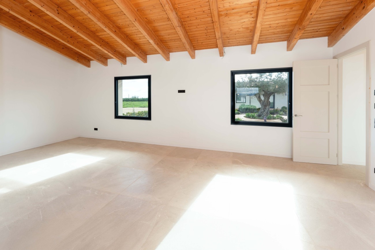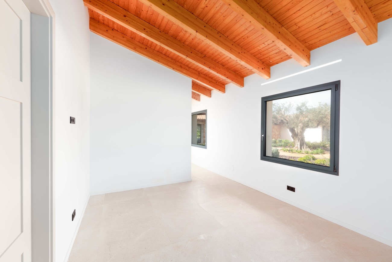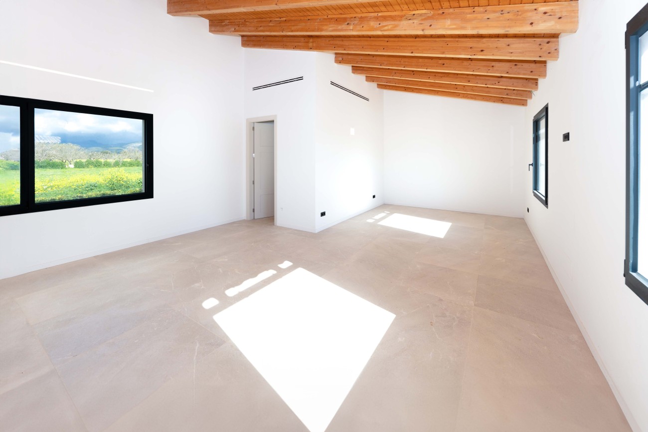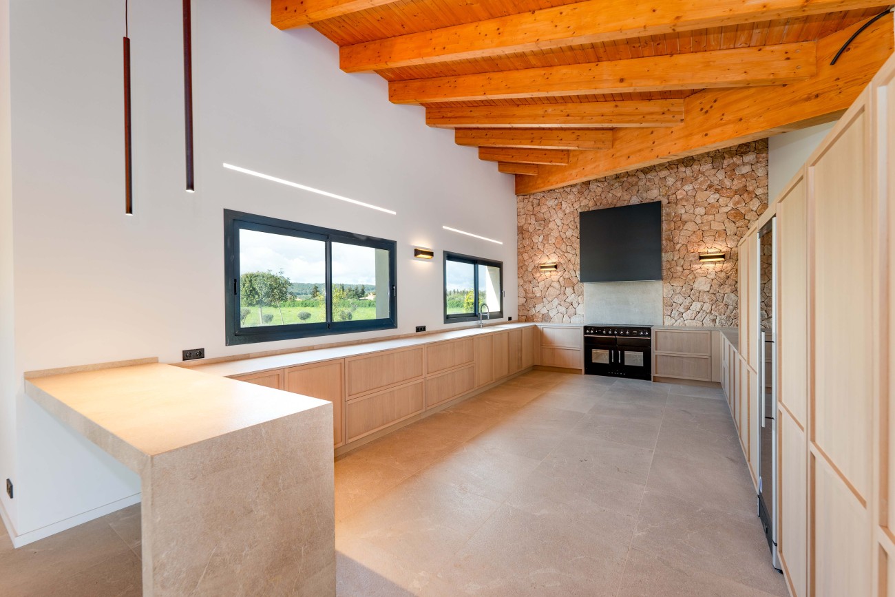 Deze nieuw gebouwde moderne finca ligt verscholen in het serene platteland van Santa Maria en biedt een uitzonderlijke mix van modern comfort en traditionele charme. Ontworpen in een U-vorm met hoge plafonds, beschikt het pand over grote open ruimtes die het natuurlijke licht maximaliseren en een prachtig uitzicht op de omliggende bergen en open velden. Door de ligging op het zuiden geniet het huis de hele dag door van overvloedig zonlicht, wat een warme en uitnodigende sfeer creëert.
