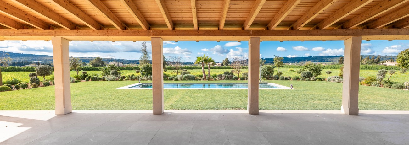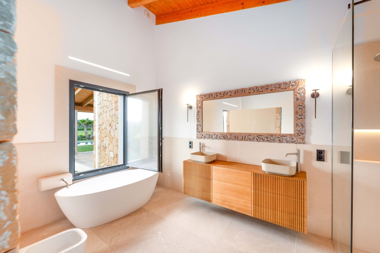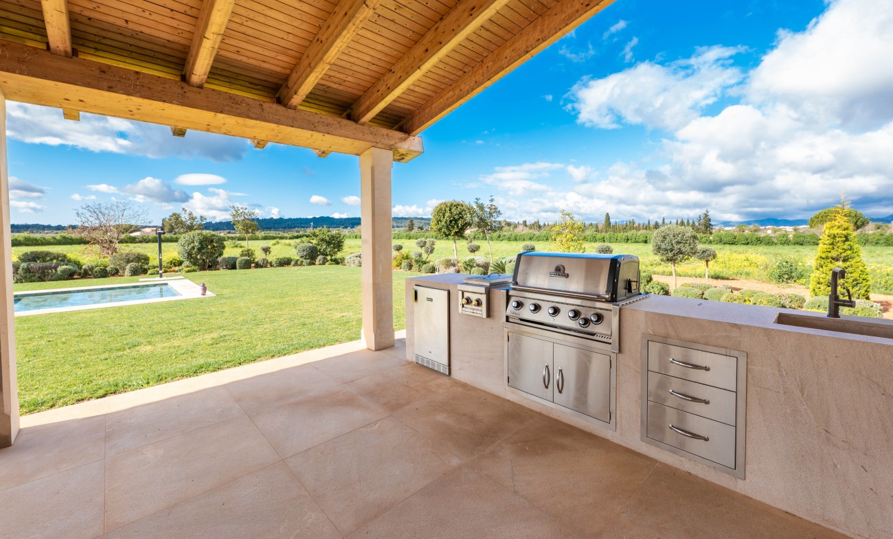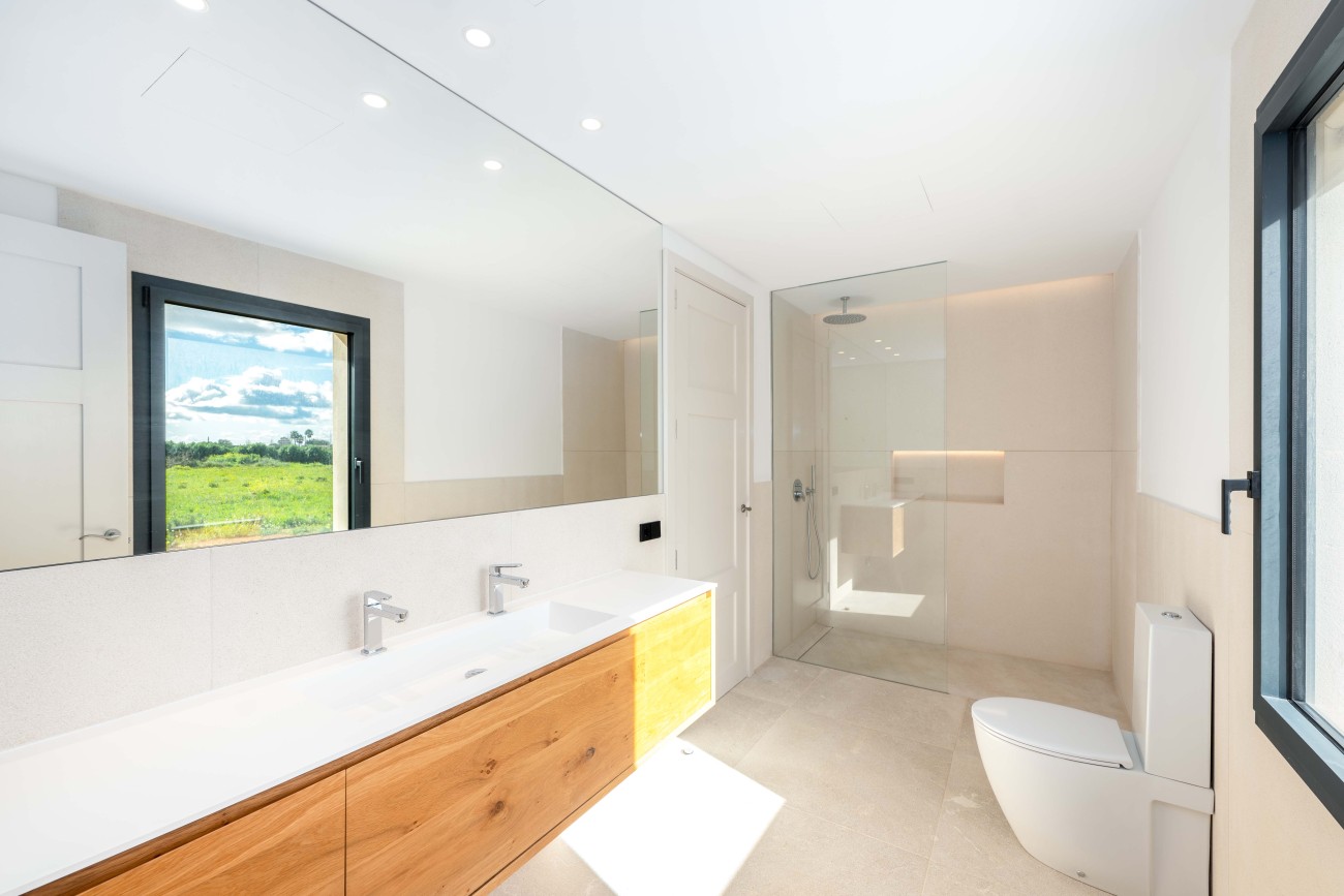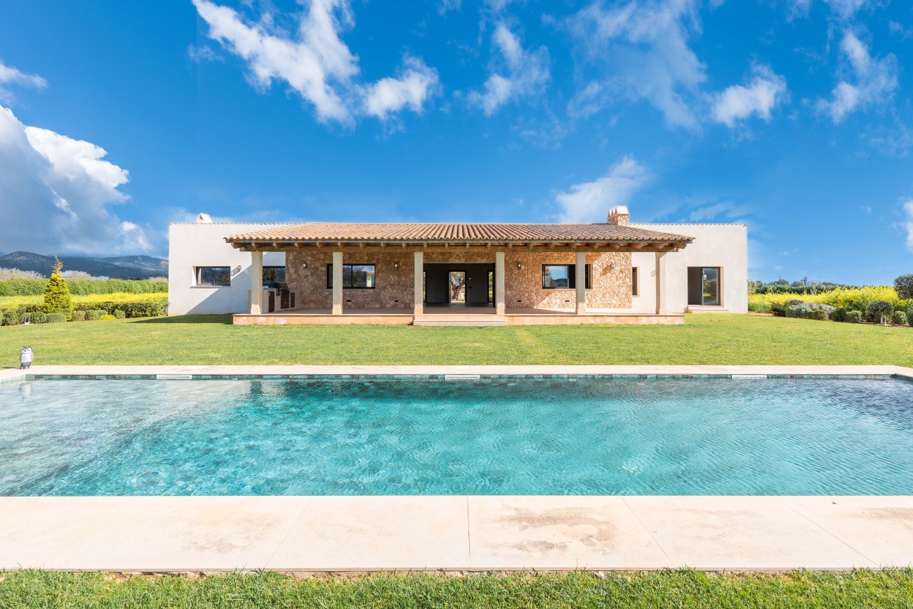 Deze nieuw gebouwde moderne finca ligt verscholen in het serene platteland van Santa Maria en biedt een uitzonderlijke mix van modern comfort en traditionele charme. Ontworpen in een U-vorm met hoge plafonds, beschikt het pand over grote open ruimtes die het natuurlijke licht maximaliseren en een prachtig uitzicht op de omliggende bergen en open velden. Door de ligging op het zuiden geniet het huis de hele dag door van overvloedig zonlicht, wat een warme en uitnodigende sfeer creëert.