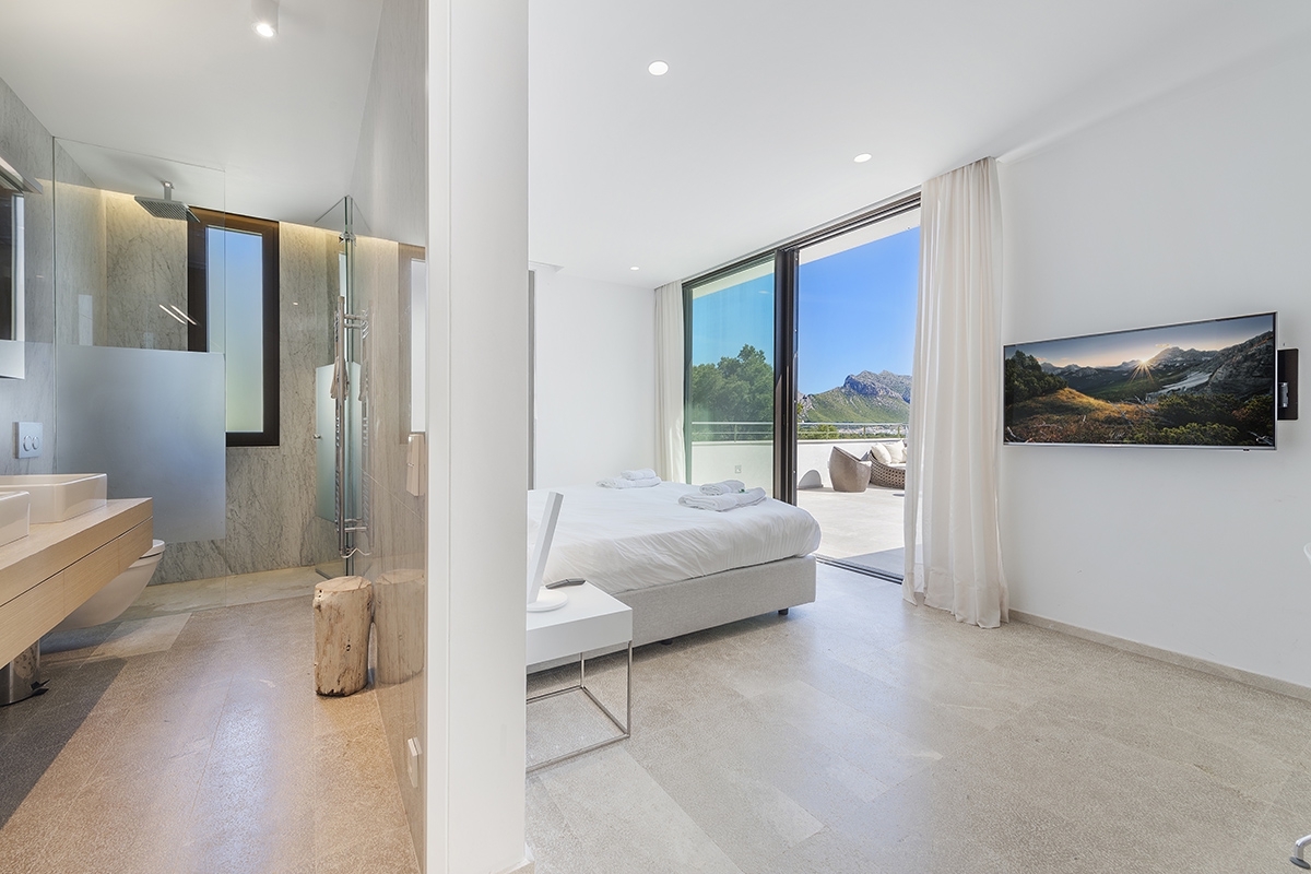 Deze zeldzame villa is de perfecte keuze voor liefhebbers van hedendaagse architectuur die op zoek zijn naar een indrukwekkend en stijlvol verblijf in het hart van Puerto Pollensa.
