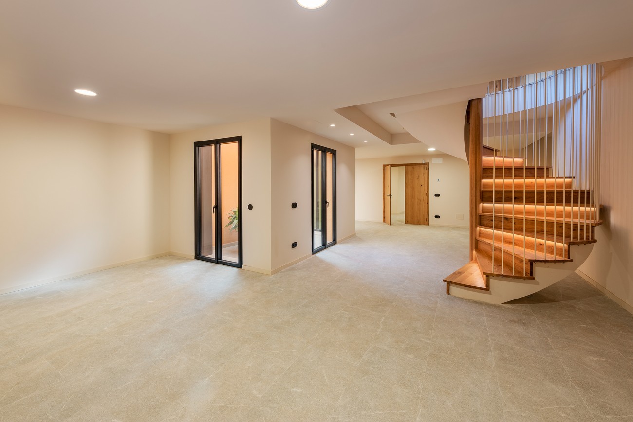De benedenverdieping heeft een royale garage, een wijnkelder, een fitnessruimte, een wasruimte en diverse technische en opslagruimtes.