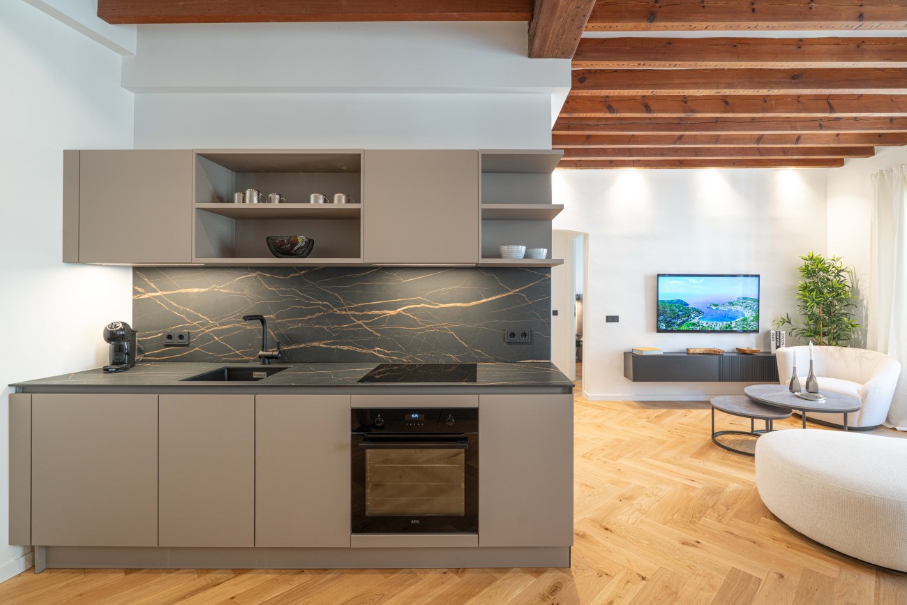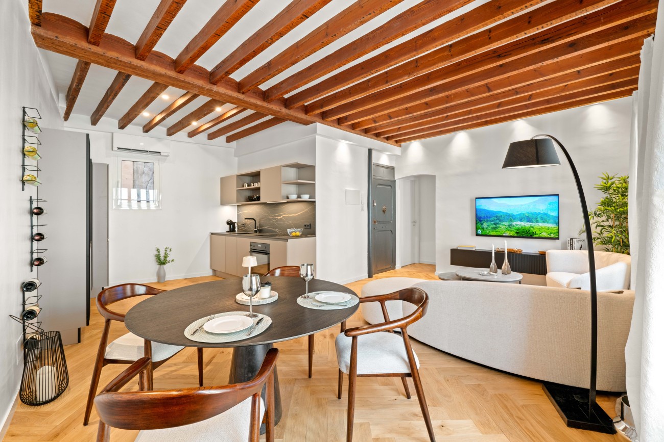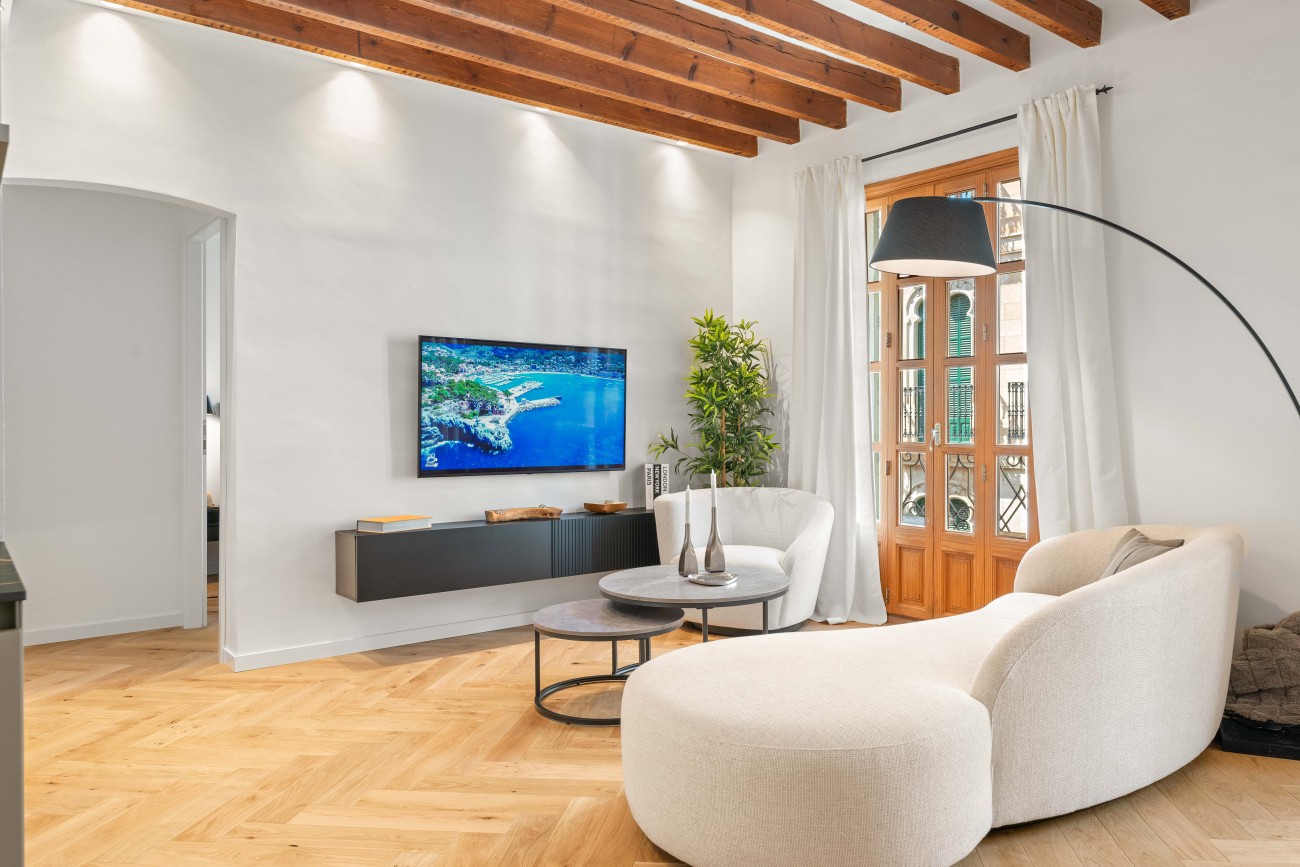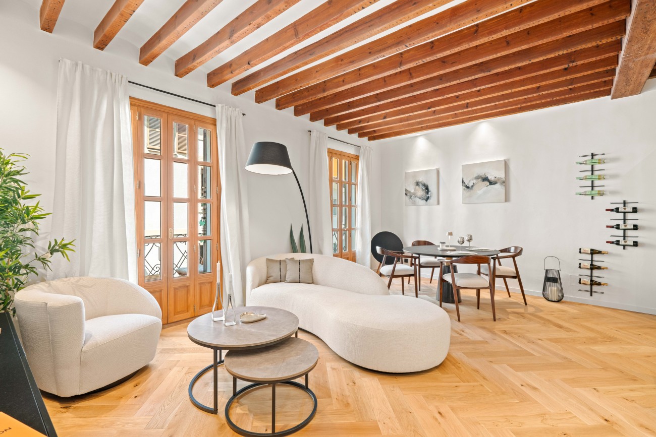 Dit prachtig gerenoveerde appartement van 62 m² wordt te koop aangeboden in het centrum van de oude stad van Palma, op slechts een korte wandeling van het levendige Plaza Major.
