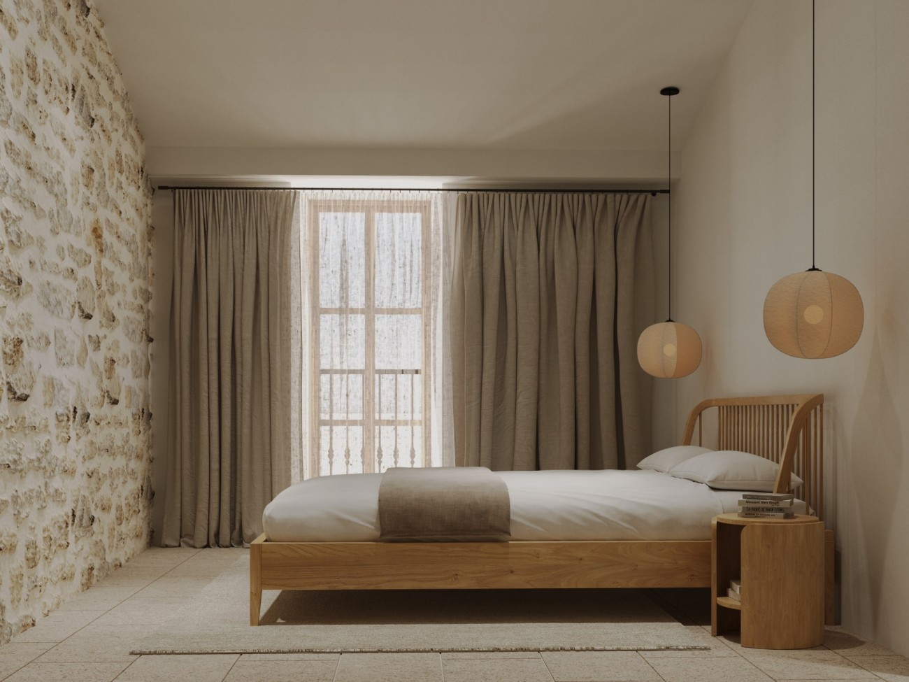 De woning is zorgvuldig gerenoveerd volgens de hoogste standaard en behoudt zijn authentieke karakter door de wanden in zichtbare stenen en de hoge plafonds, terwijl het moderne comfort zoals vloerverwarming, verborgen airconditioning en hoogwaardige afwerking is geïntegreerd. Natuurlijke materialen – massief eiken schrijnwerk, Iroko ramen en deuren, stenen vloeren en marmeren werkbladen – weerspiegelen uitzonderlijk vakmanschap en tijdloze elegantie.
