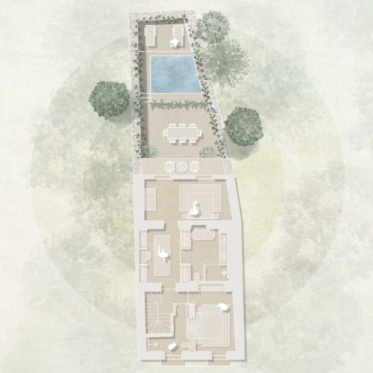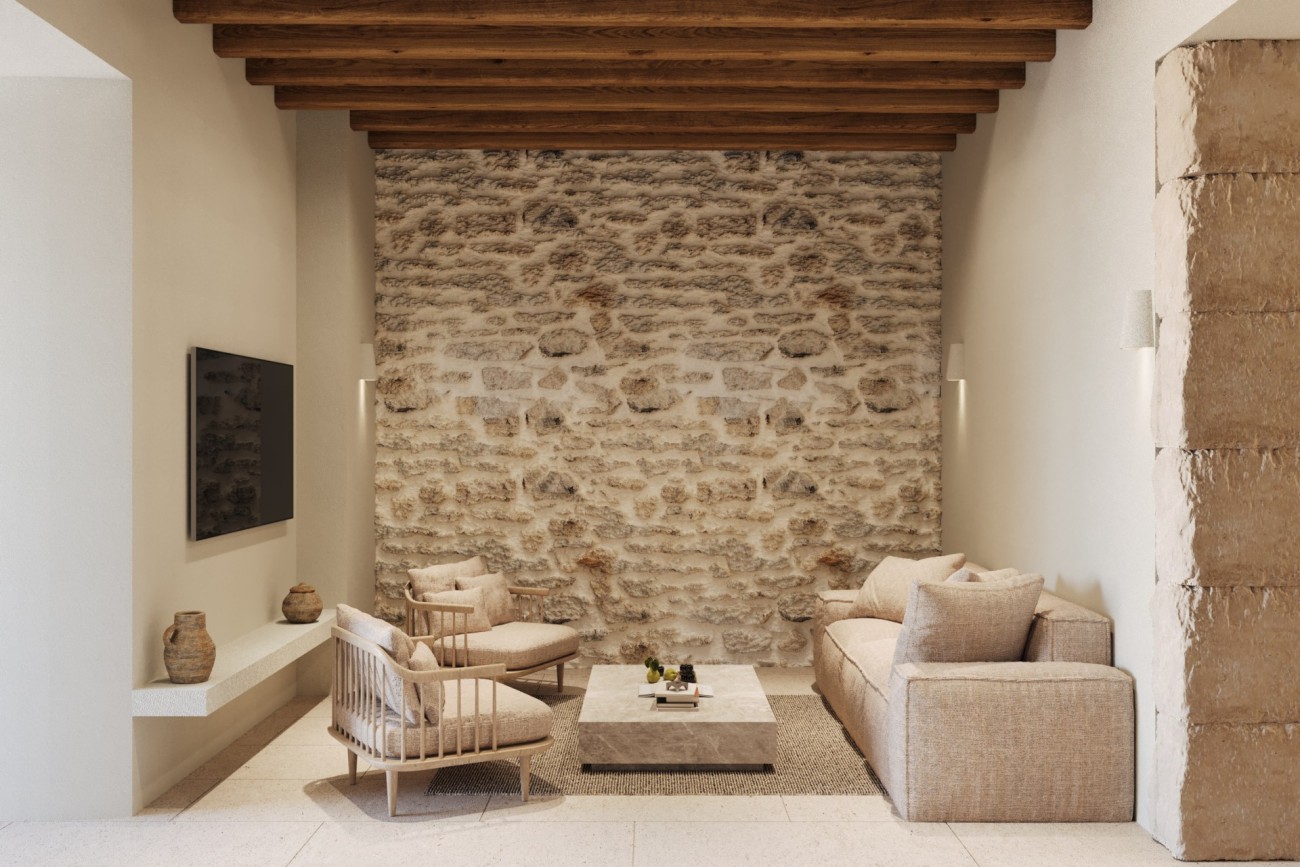 Dit prachtig gerestaureerde, traditionele stenen dorpshuis ligt in het hart van Alaró en combineert op perfecte wijze historische charme met hedendaagse luxe. Op een perceel van 150 m² en 280 m² verdeeld over drie verdiepingen, beschikt het huis over vier slaapkamers met eigen badkamer, parkeergelegenheid en een serene tuin van 60 m² met een privézwembad.