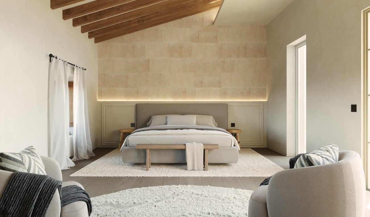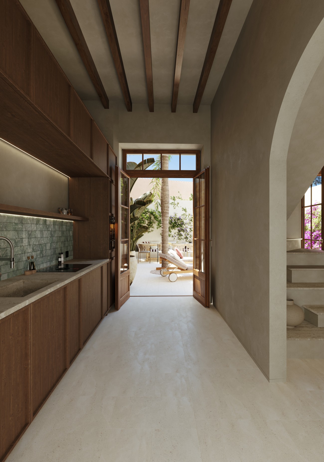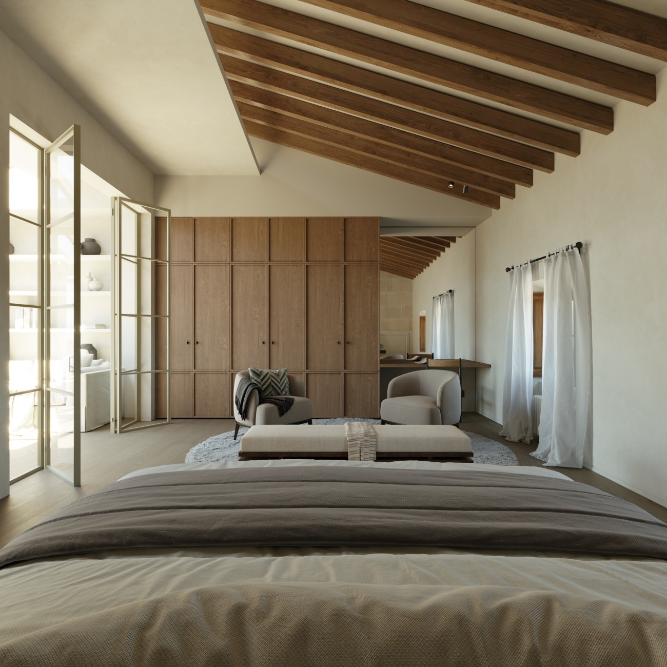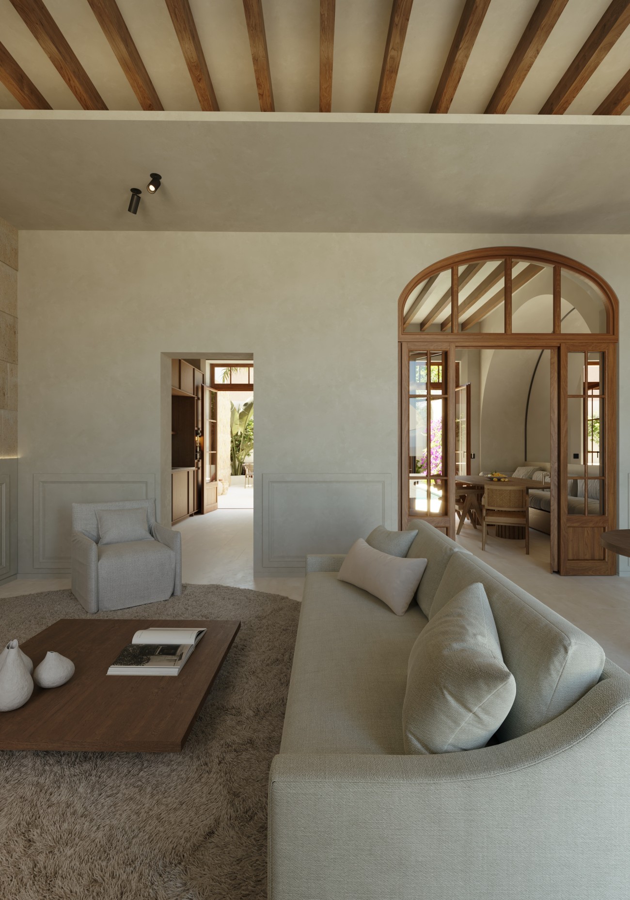 De woning beschikt over drie ruime tweepersoonsslaapkamers en drie badkamers, samen met een privéterras met open, onbelemmerd uitzicht dat je uitnodigt om te ontspannen en te genieten van de serene omgeving. Het huis is zorgvuldig ontworpen en heeft unieke architectonische elementen zoals sierlijke bogen, zichtbare houten balken, stenen afwerkingen en op maat gemaakt houten meubilair, waardoor karakter en comfort hand in hand gaan.