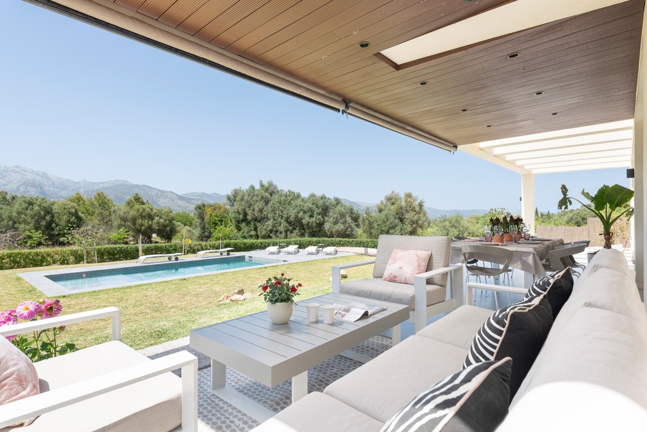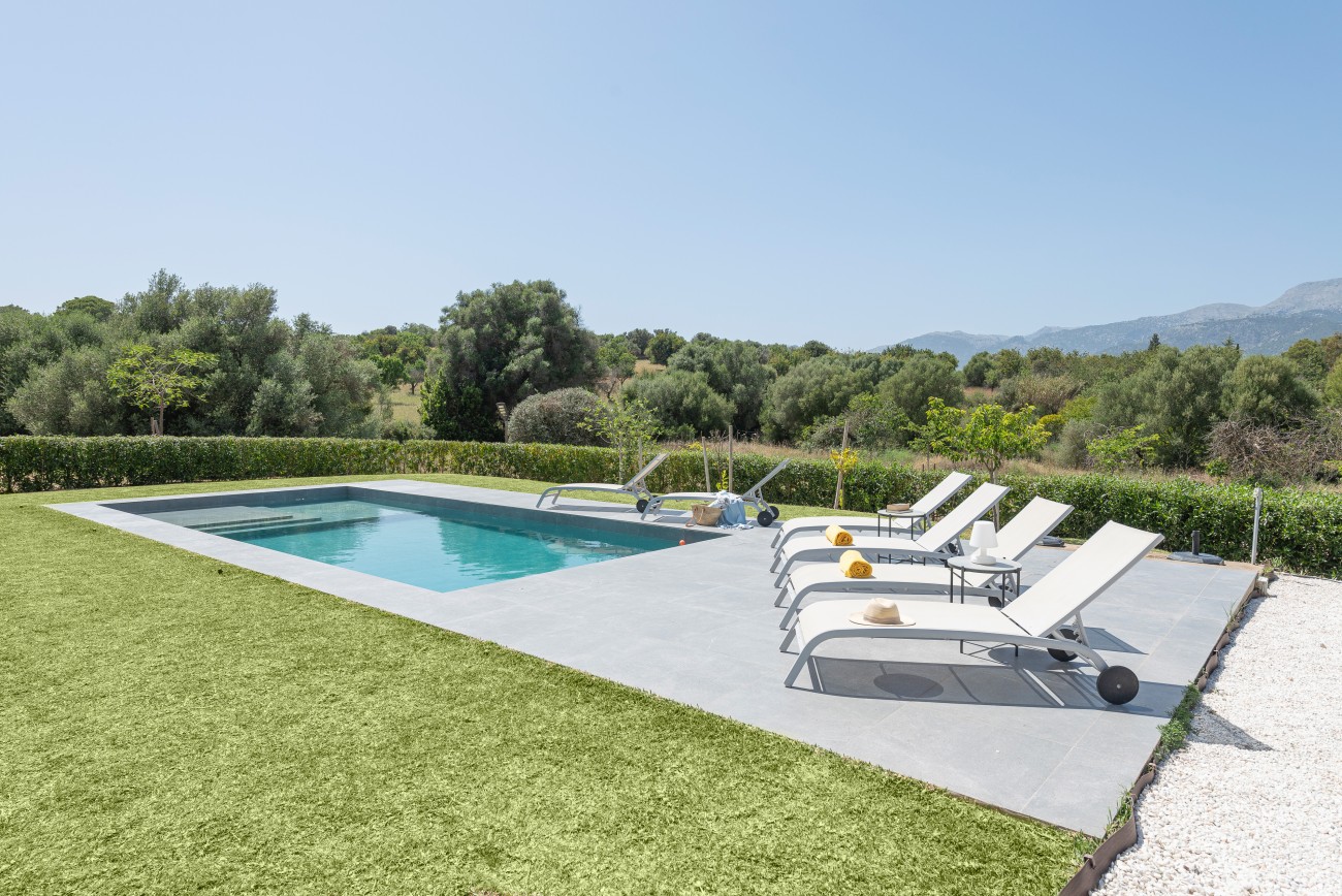 Buiten beschikt het pand over verschillende zonovergoten terrassen en een groot zwembad, perfect om in alle rust te genieten van het klimaat op het eiland.