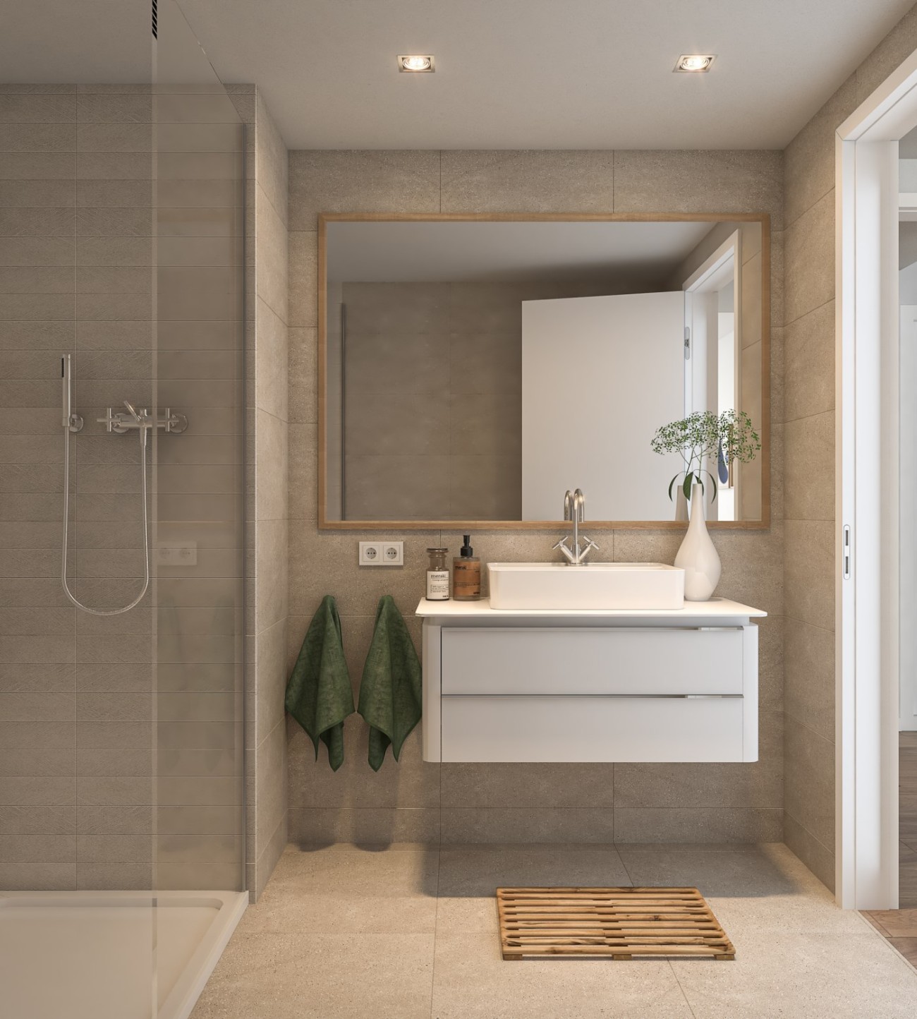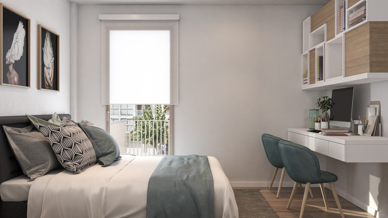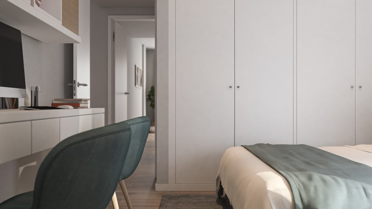 De woning beschikt over 2 slaapkamers en 2 badkamers, een volledig uitgeruste keuken met witgoed en vloerverwarming in de hele woning, evenals omkeerbare airconditioning voor zowel warm als koel weer in alle kamers.