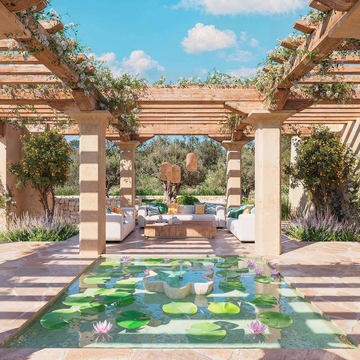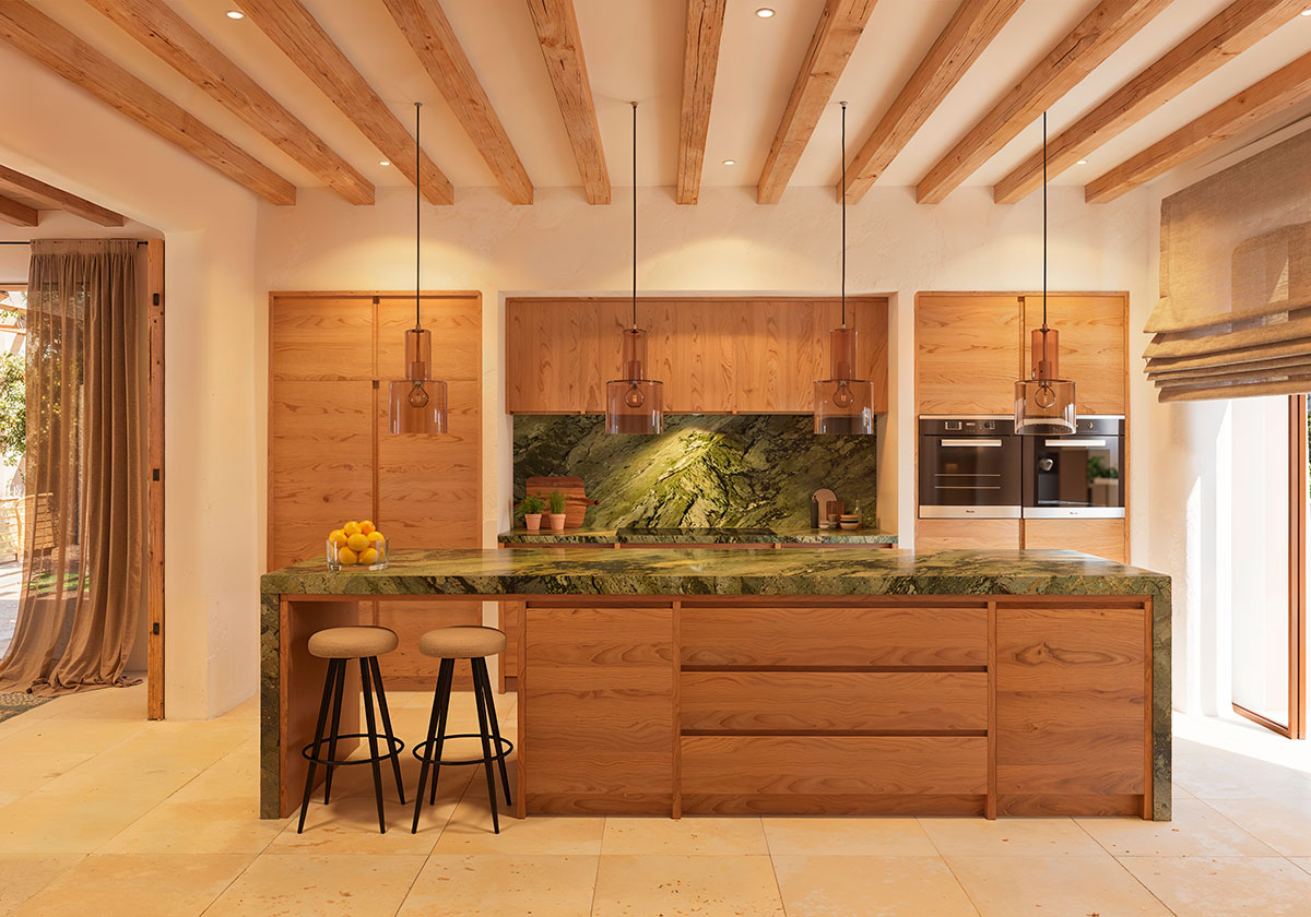De gelijkvloerse indeling heeft vijf slaapkamers, vijf badkamers en twee gastentoiletten, waardoor er royale ruimte is voor gezinsleven en entertainment. Een centrale binnenplaats overlaadt het interieur met natuurlijk licht met behoud van privacy, en kenmerken zoals houten balken en inloopkasten voegen karakter en functionaliteit toe. De woning biedt ook een zwembad van 75 m², een kelder, een carport voor meerdere auto’s en een mediterrane tuin. Vloerverwarming, airconditioning en ramen met dubbele beglazing zorgen het hele jaar door voor comfort.