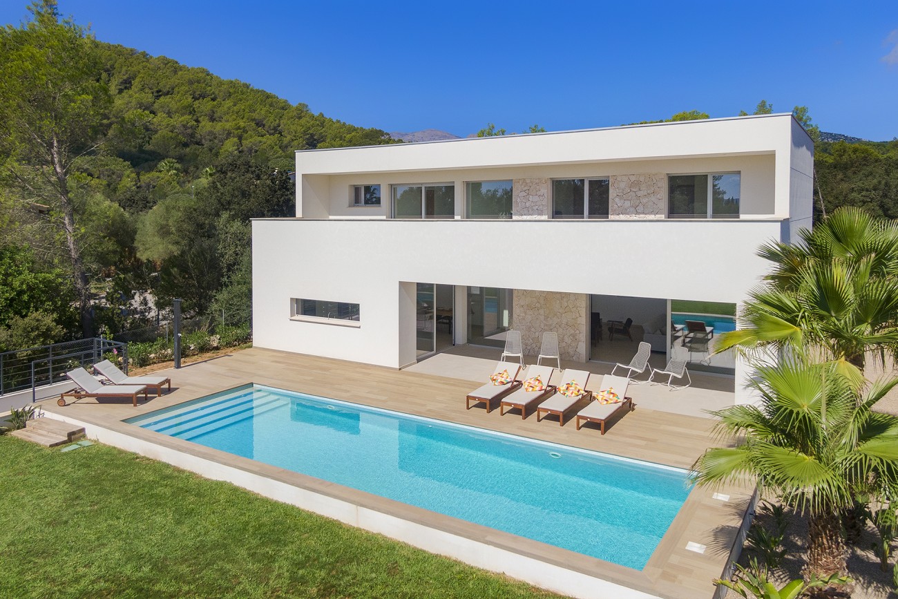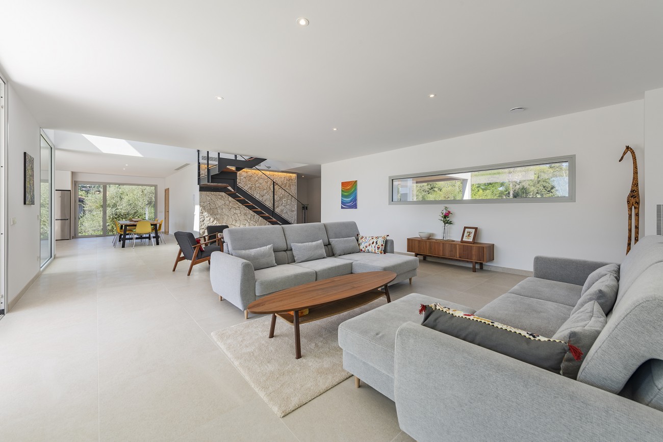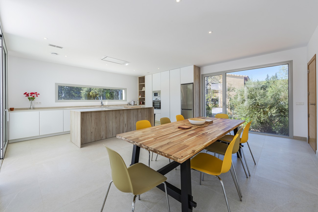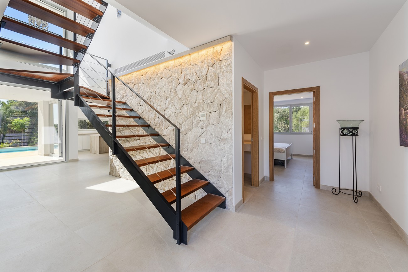 Deze ultramoderne luxe villa (voltooid in 2022) ligt in Subach, een van de rustigste en groenste woonwijken van Pollensa. Op slechts 7-8 minuten rijden van de historische oude stad combineert de locatie rust met gemak. De prestigieuze internationale school MySchool ligt direct bij de ingang van de gemeenschap, waardoor het een ideale keuze is voor gezinnen.