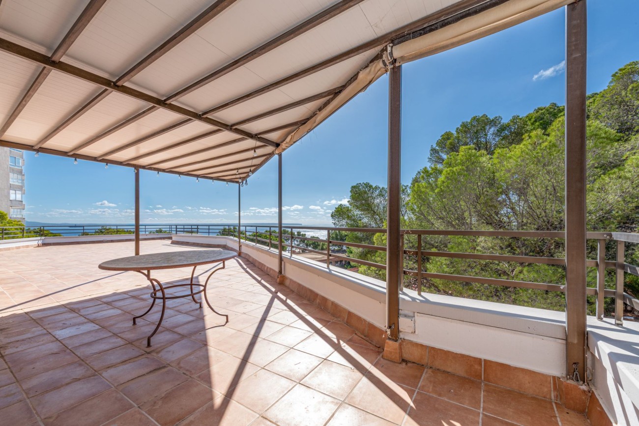 Dit elegante duplex penthouse in mediterrane stijl ligt in de gewilde wijk Illetes, aan de zuidwestkust van Mallorca. De woning heeft een bevoorrechte zuidoostelijke oriëntatie en biedt een panoramisch uitzicht op zee tot aan het eiland Cabrera. De woning is ontworpen voor wie op zoek is naar zowel comfort als tijdloze charme en biedt een ideale gelegenheid voor modernisering met behoud van het karakter.