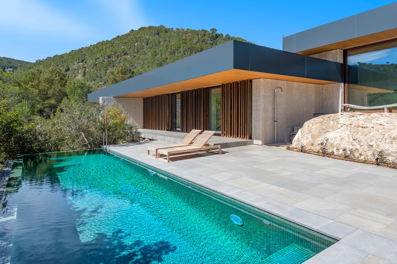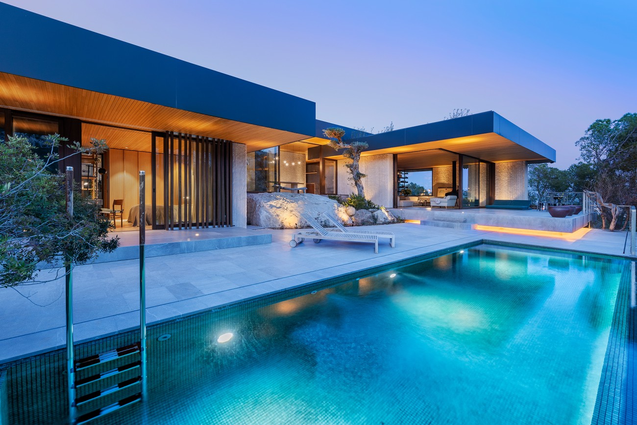 De villa is gebouwd volgens de hoogste specificaties met stijlvolle interieurs aangevuld met een mix van moderne en natuurlijke materialen, het heeft een zonnige zuidwestelijke oriëntatie, lichte open ruimtes, en de vloer tot het plafond deuren die een overvloed aan natuurlijk licht toelaten en bieden directe toegang tot de terrassen.