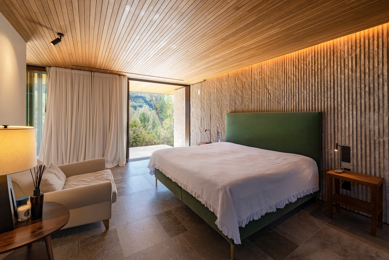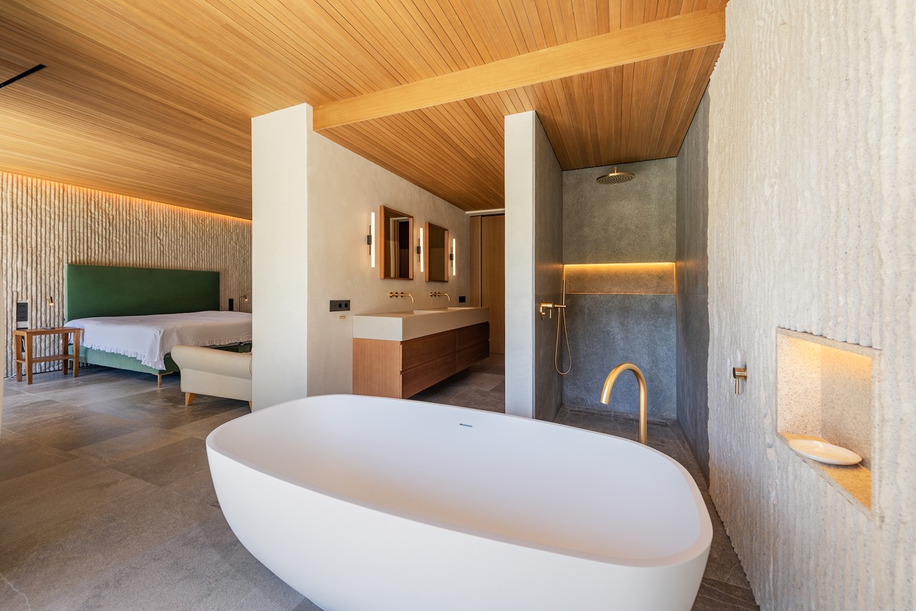 De villa heeft ook vier tweepersoonsslaapkamers (waarvan een met een kleedkamer), vier badkamers, een gastentoilet, een wasruimte en een garage.