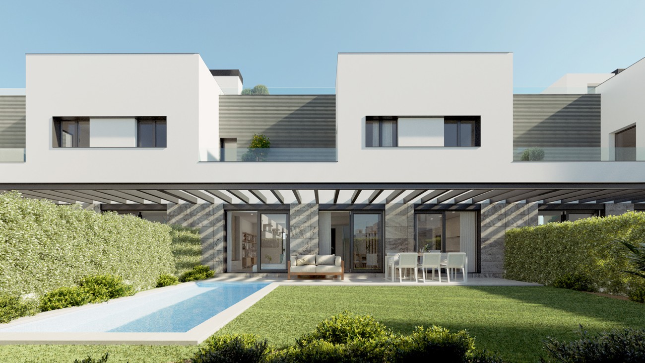 Elk huis heeft een ruime open woonkamer tot ongeveer 30 m2, een volledig ingerichte keuken, slaapkamers waaronder een grote slaapkamer met inloopkast, 3 complete badkamers (een en-suite), een ruime privétuin tot 130m2, een privézwembad, een dakterras en 2 ondergrondse parkeerplaatsen.