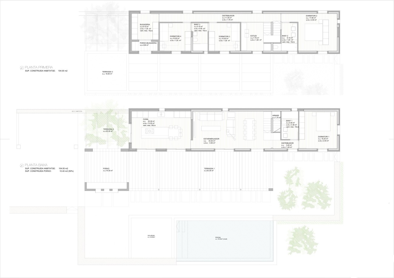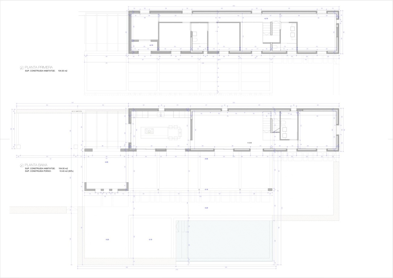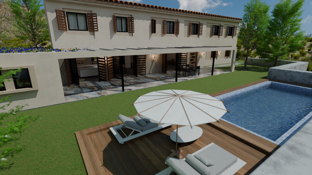 De woning wordt geleverd met een goedgekeurde bouwvergunning voor de renovatie en uitbreiding van een vrijstaande eengezinswoning met een totale bebouwde oppervlakte van 220 m², plus een zwembad van 40 m². De geplande indeling biedt een goed ontworpen en comfortabel woonconcept: