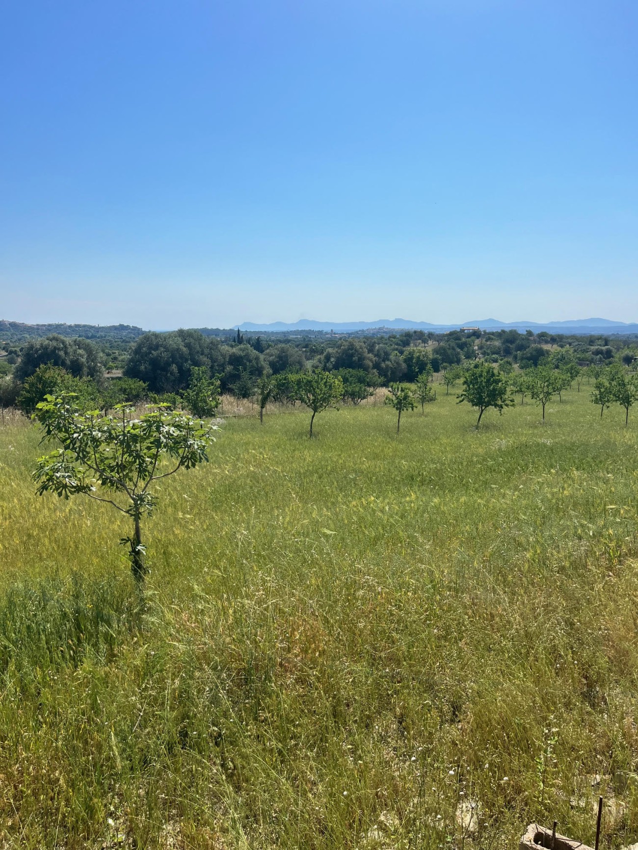 Dit uitzonderlijke rustieke perceel van ongeveer 21.000 m² ligt op een verhoogde positie in het hart van Mallorca en biedt een open, ononderbroken panoramisch uitzicht dat zich uitstrekt naar de noordelijke kustlijn, in de richting van Campanet en de iconische Puig de Santa Magdalena.