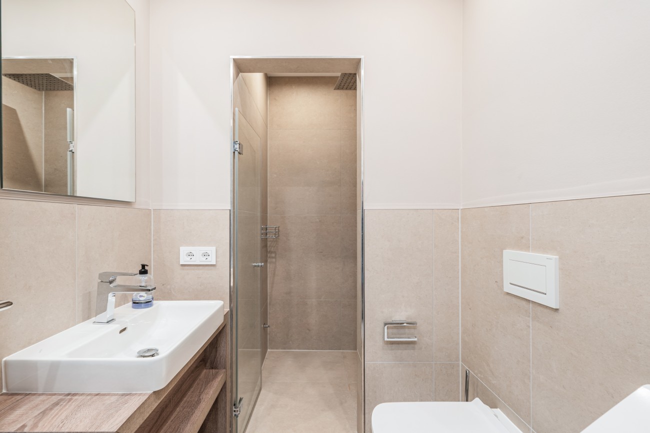 De woning beschikt over vier slaapkamers, met de mogelijkheid om er indien gewenst nog een of twee aan toe te voegen, en drie goed ingerichte badkamers. Het interieur combineert functionaliteit met hoogwaardige afwerking, zoals betegelde vloeren, PVC ramen met dubbele beglazing en Bosch apparatuur in de keuken. Een bio-ethanol open haard, vloerverwarming en airconditioning zorgen het hele jaar door voor comfort, terwijl extra hoogtepunten een wasruimte, smart home systeem en een charmante binnenplaats zijn. De buitenparkeerplaats biedt plaats aan drie auto’s, wat het gemak van deze gelijkvloerse indeling compleet maakt.