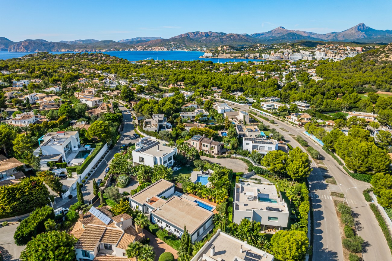 Het huis ligt op het noordoosten, waardoor er de hele dag natuurlijk licht binnenvalt en er schaduwrijke plekken zijn om te ontspannen. Nova Santa Ponsa is een prestigieuze woonwijk die bekend staat om de rustige sfeer, de nabijheid van golfbanen en gemakkelijke toegang tot de kustlijn. Lokale voorzieningen, internationale scholen en het stadscentrum van Palma liggen op slechts een klein eindje rijden, waardoor deze woning een ideale keuze is voor zowel een permanente verblijfplaats als een vakantieverblijf.