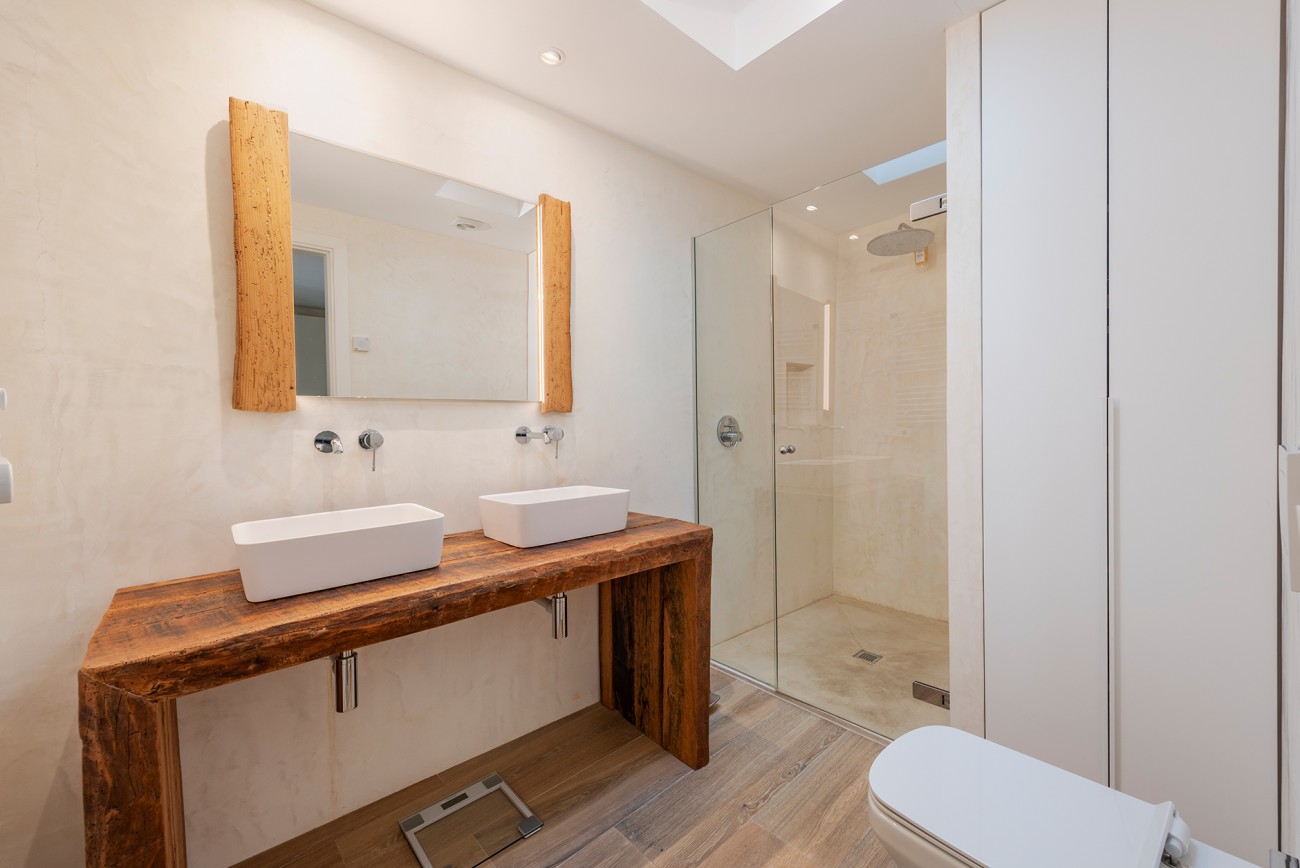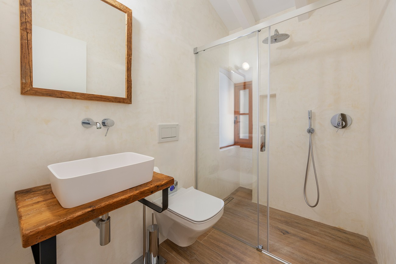 Er is vloerverwarming, warme en koude airconditioning, ingebouwde kasten, een gastentoilet en een privégarage. Op de bovenverdieping is er een extra terras met een prachtig open uitzicht op de Puig de Maria, wat het huis nog aantrekkelijker maakt.