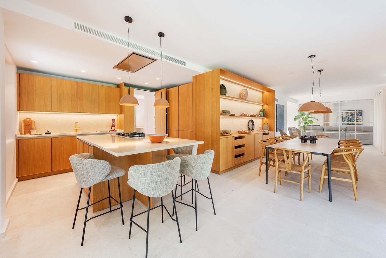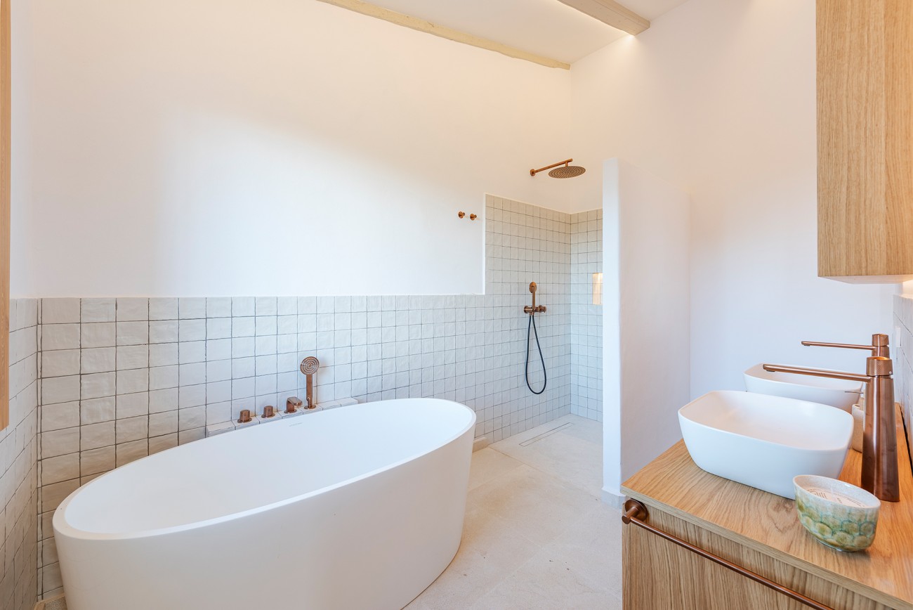 Binnen biedt de villa vloerverwarming en airconditioning (warm/koud), zodat je het hele jaar door verzekerd bent van comfort. Op de eerste verdieping bevinden zich drie grote suites met prachtig panoramisch uitzicht, plus twee extra tweepersoonsslaapkamers die een badkamer delen.