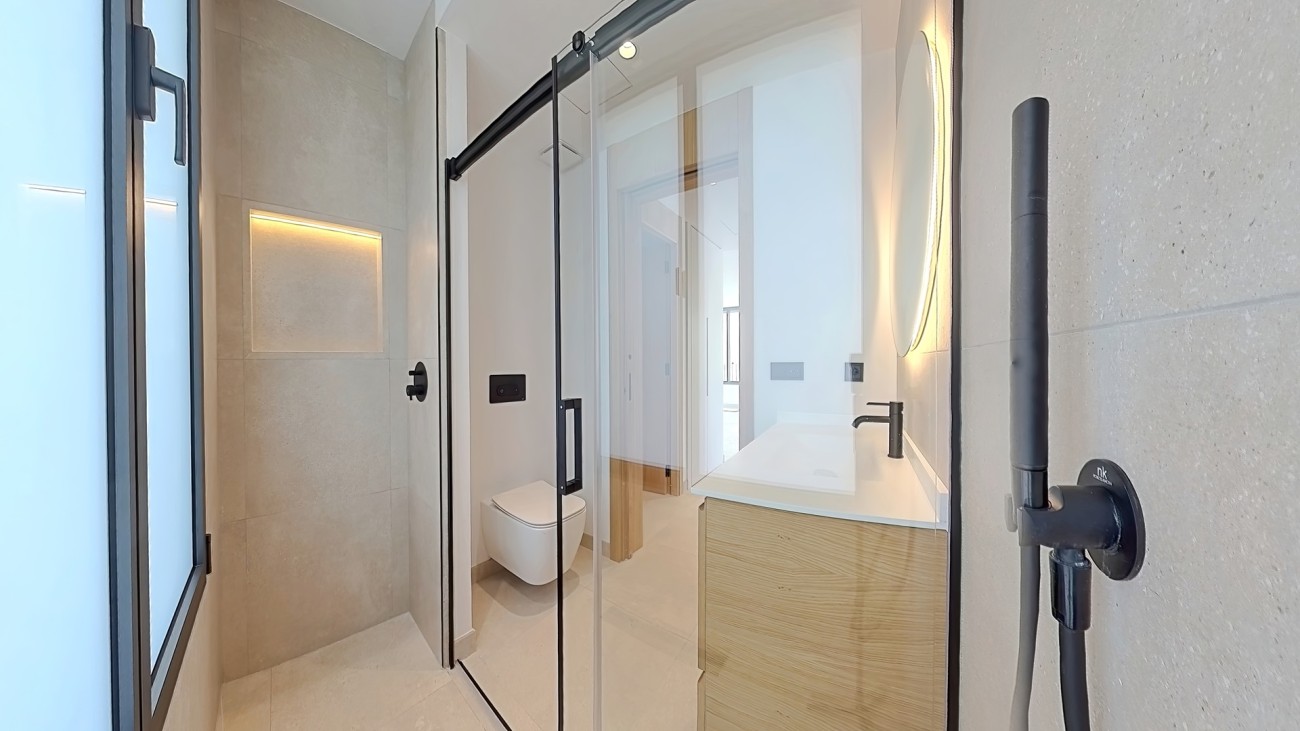 Alle wooneenheden hebben een open woonconcept met een woon-eetkamer en een ingerichte designkeuken als middelpunt van het appartement en een indeling die doorloopt naar de buitenporche en terrassen. Alle wooneenheden hebben vloerverwarming, uitstekende apparatuur, indirecte verlichting, eiken timmerwerk, porseleinen vloeren met micro-cement en airconditioning in het hele appartement.