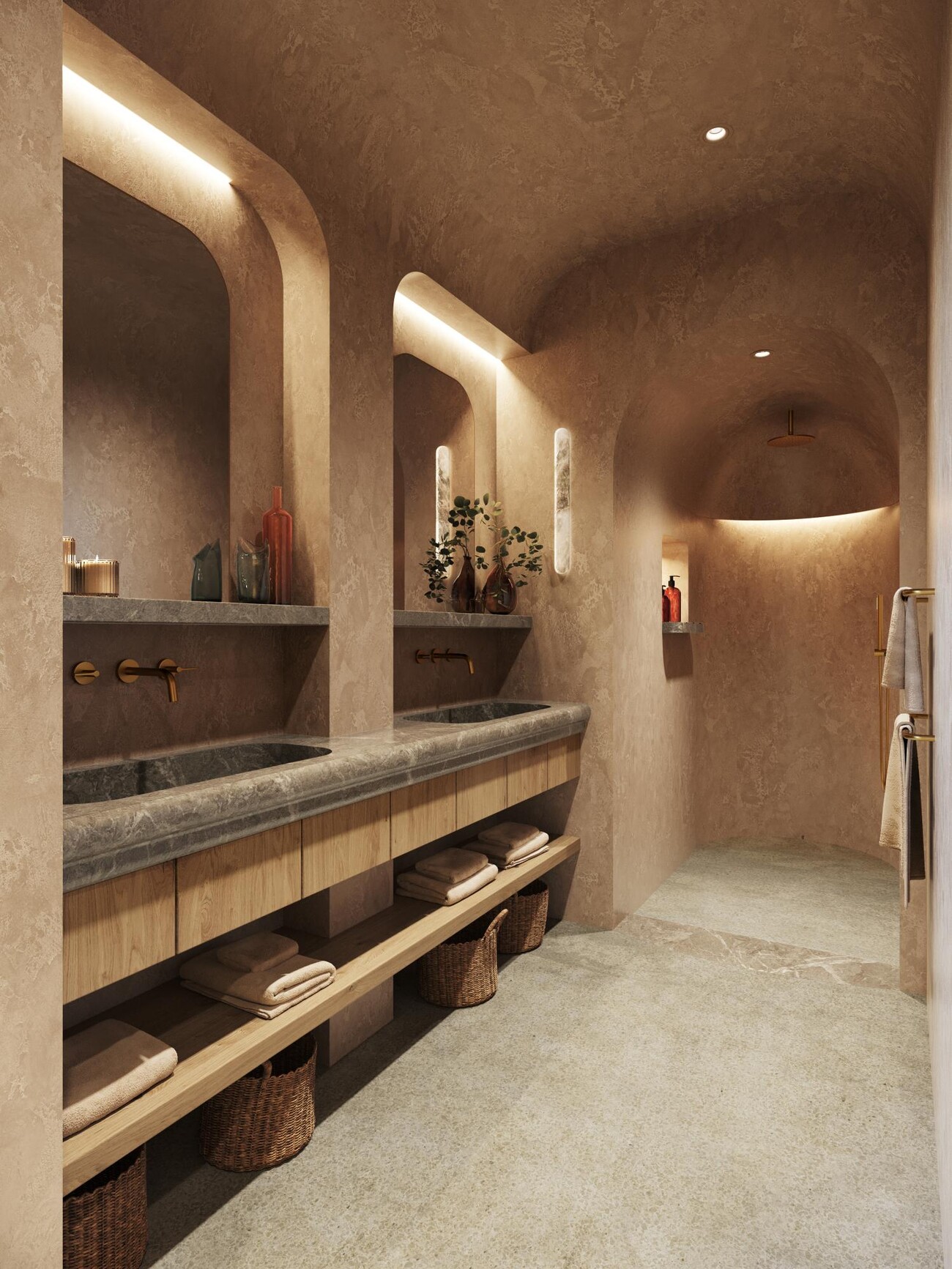 Op de eerste verdieping vind je drie ruime slaapkamers, elk met een eigen en-suite badkamer en inloopkast. Dit niveau biedt een adembenemend uitzicht op de weelderige tuin en het omringende natuurlijke landschap, waardoor een sereen en rustig toevluchtsoord ontstaat.