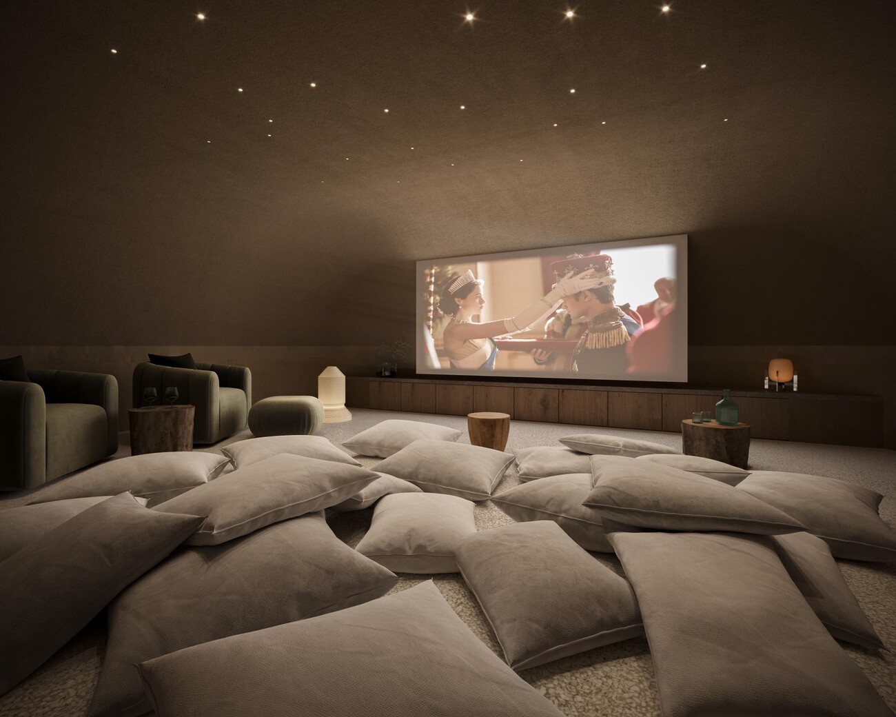 De begane grond beschikt over een gezellige woonkamer, die ook dienst kan doen als thuisbioscoop, een gastentoilet, een hoogwaardige keuken en een ruime, zonovergoten woon-eetkamer. Vanaf hier heb je direct toegang tot een uitgestrekt overdekt en open terras, compleet met een prachtig zwembad en een fantastische chill-outruimte – perfect om te ontspannen en buiten te genieten.