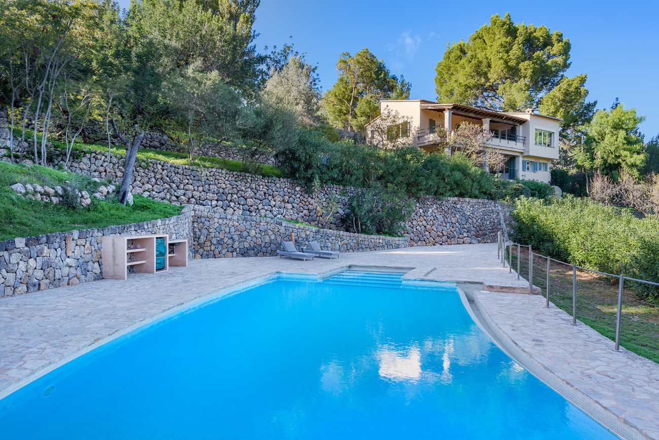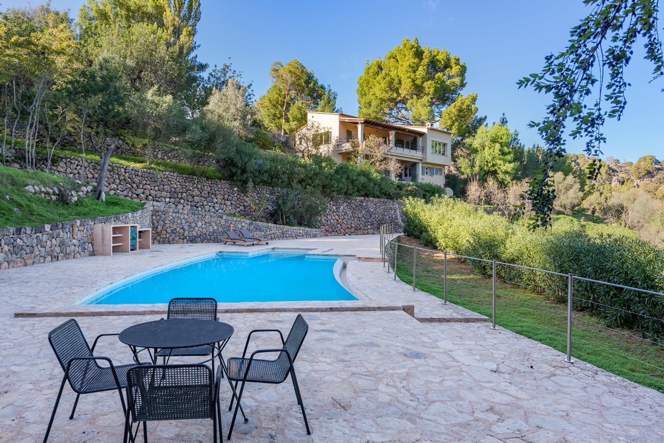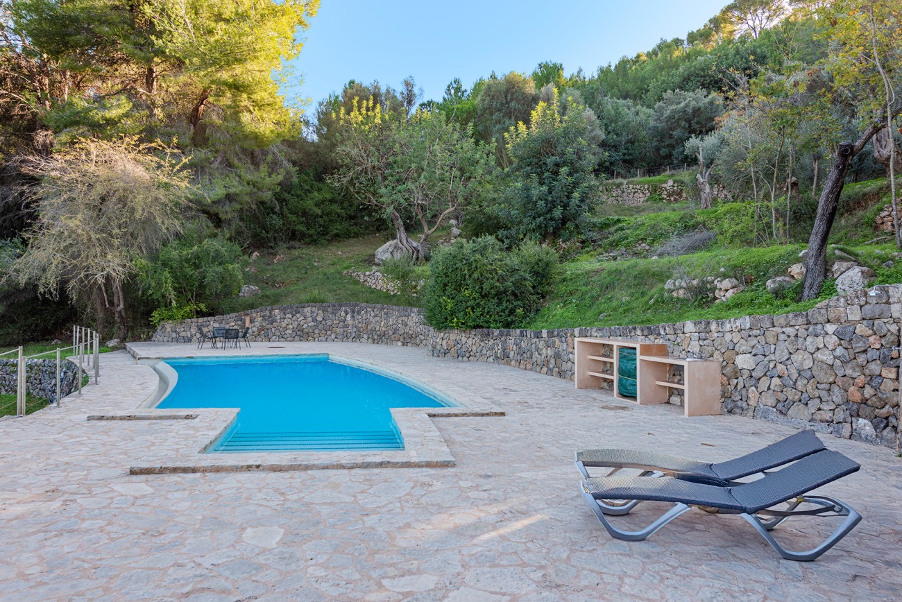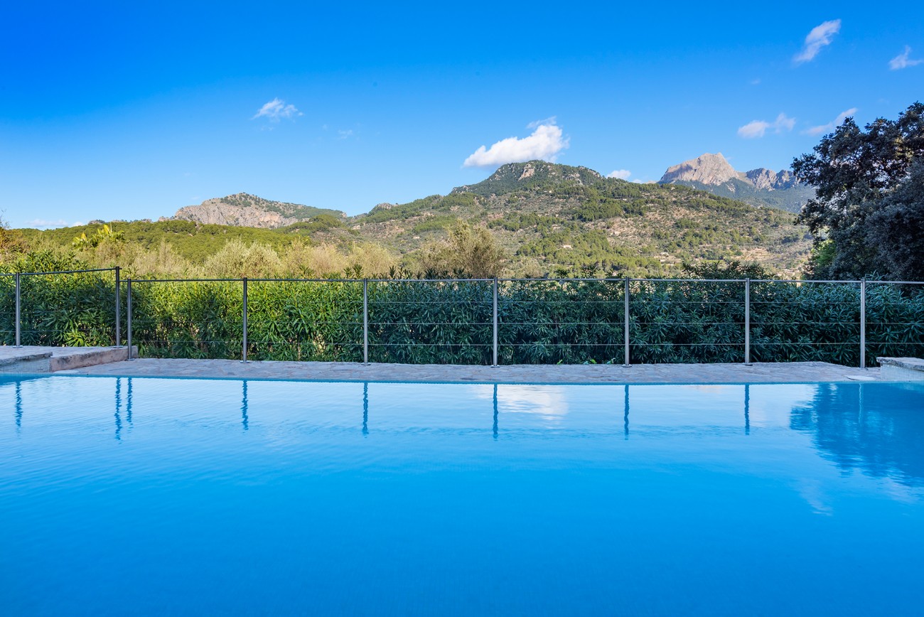 Binnen zijn frisse en karaktervolle interieurs een mix van parketvloeren, witgekalkte muren en traditionele balkenplafonds. De ruime woonkamer geeft direct toegang tot een overdekt terras waar het prachtige Tramuntana-gebergte een steeds veranderende achtergrond vormt.