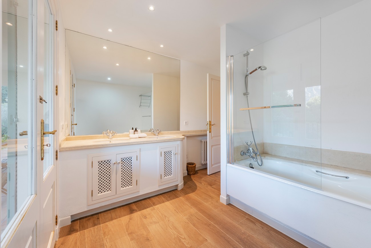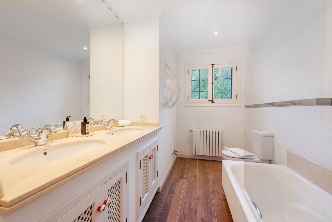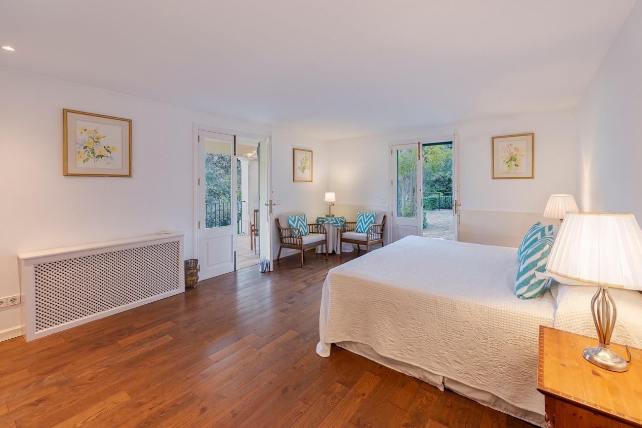De villa is verdeeld over twee verdiepingen en heeft vijf lichte slaapkamers – waarvan er momenteel een wordt gebruikt als kantoor – en vier badkamers (waarvan drie ensuite). Vier slaapkamers hebben openslaande deuren naar terrassen met prachtig uitzicht op de bergen en de vallei.