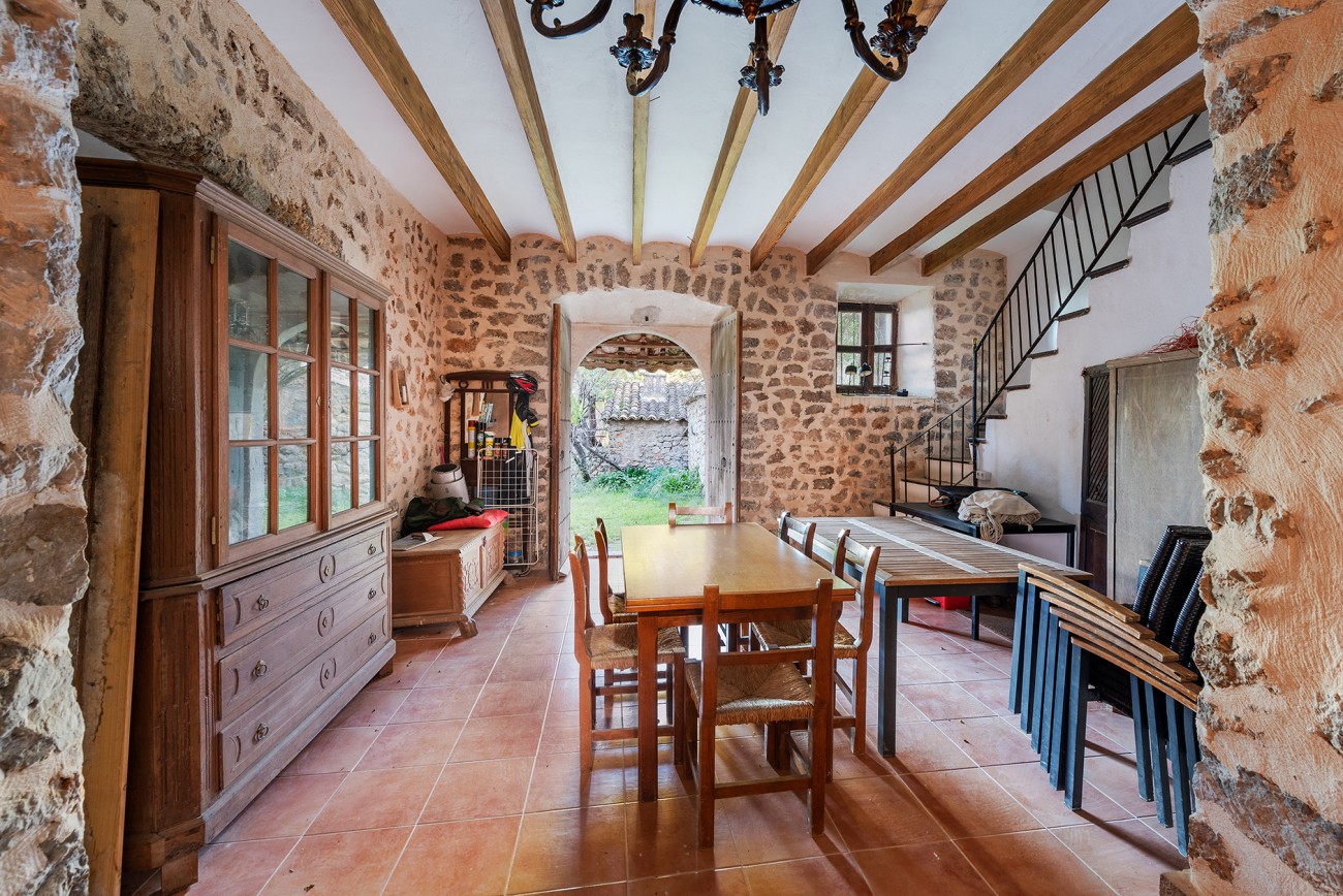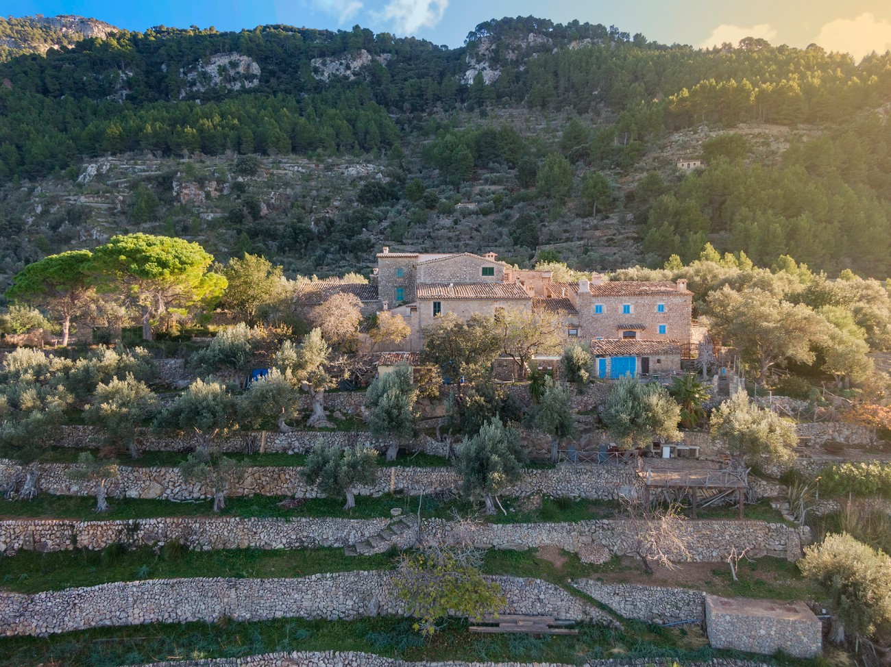 Balearic Properties presenteert met genoegen de noordelijke helft van het pand, met meer dan 500m2 woonruimte, een Tafona van 116m2 , een olijfmolen in originele staat, een casita en een cisterna. Het object ligt hoog boven de weg van Soller naar Deià, in het gehucht Son Coll, naast het wandelpad van Soller naar Deià, en het uitzicht op zee is werkelijk spectaculair.