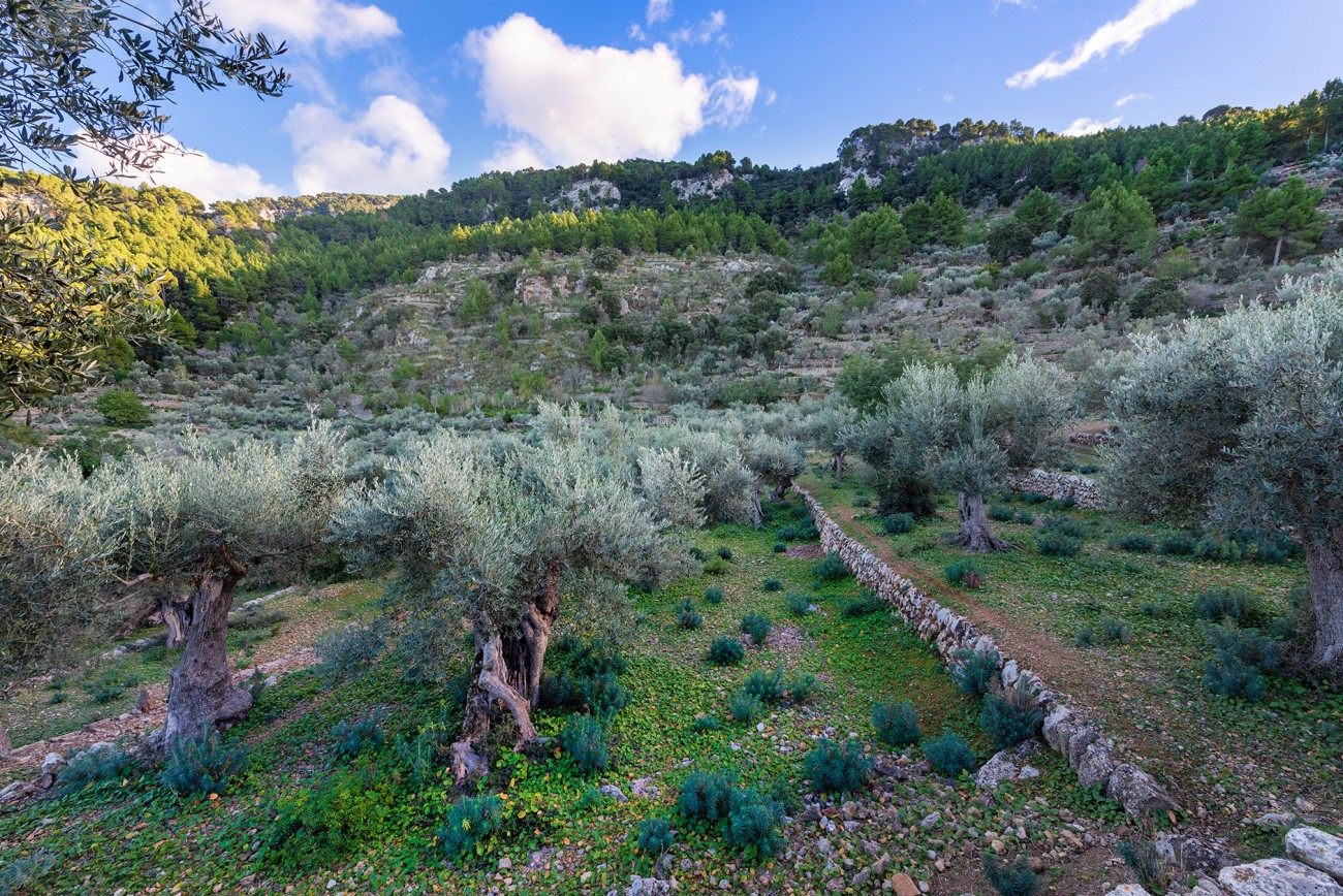 Het pand is bereikbaar via een geasfalteerde bergweg die omhoog slingert naar de 78.000 m2 aan oude berg- en olijfgaarden die ook deel uitmaken van Son Coll. Er is ook een aparte tuin van 6.795 m2 aan de voorkant van het pand. Hier kun je zitten en genieten van onvergetelijke zonsondergangen.