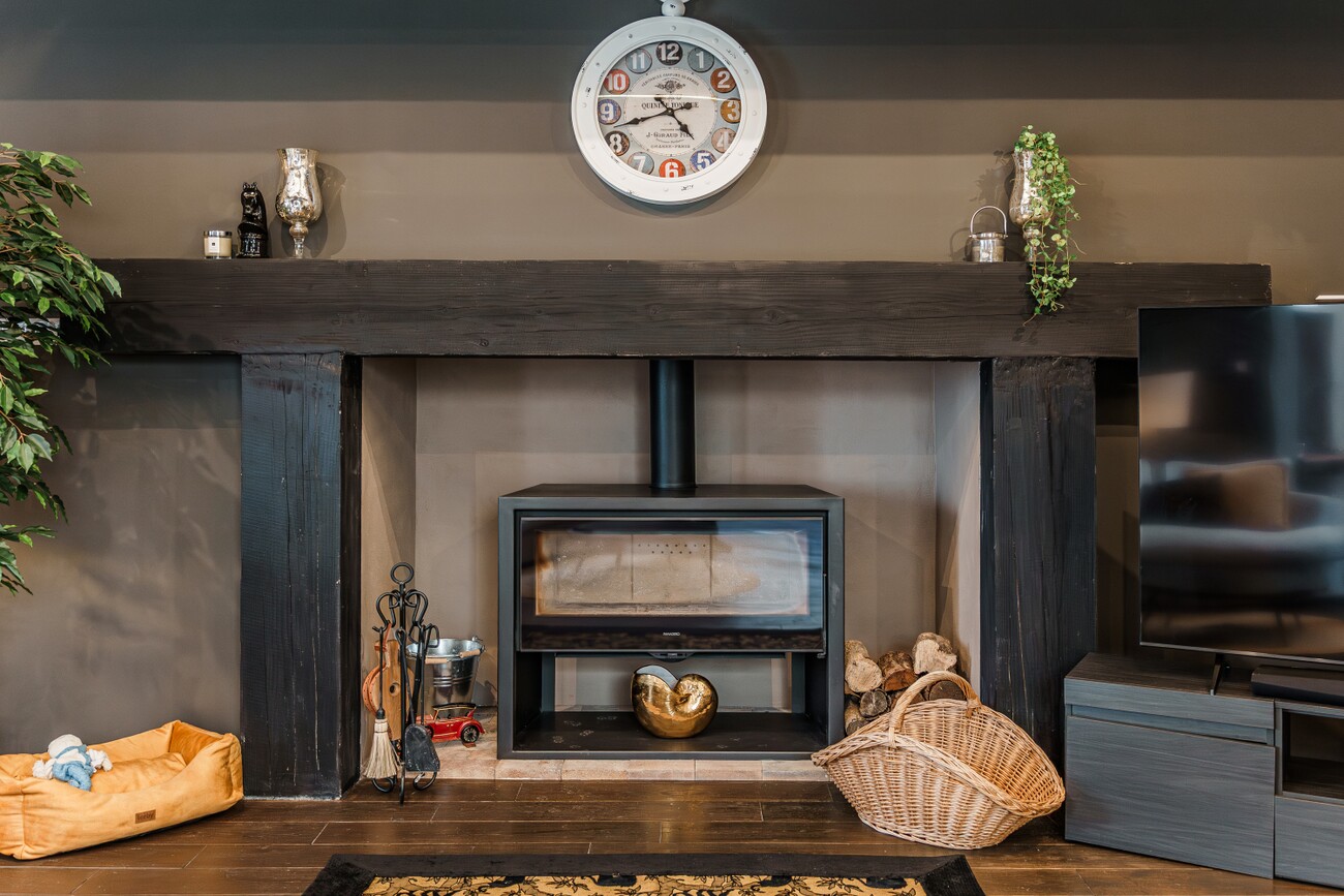 Finished to the highest standards, the interiors include solid wooden doors and windows. A large glass atrium fills the living and dining areas with natural light. The spacious living room has a wood-burning stove, and the fully fitted kitchen includes a separate pantry and adjacent dining area. The basement is perfect for storage or a gym.