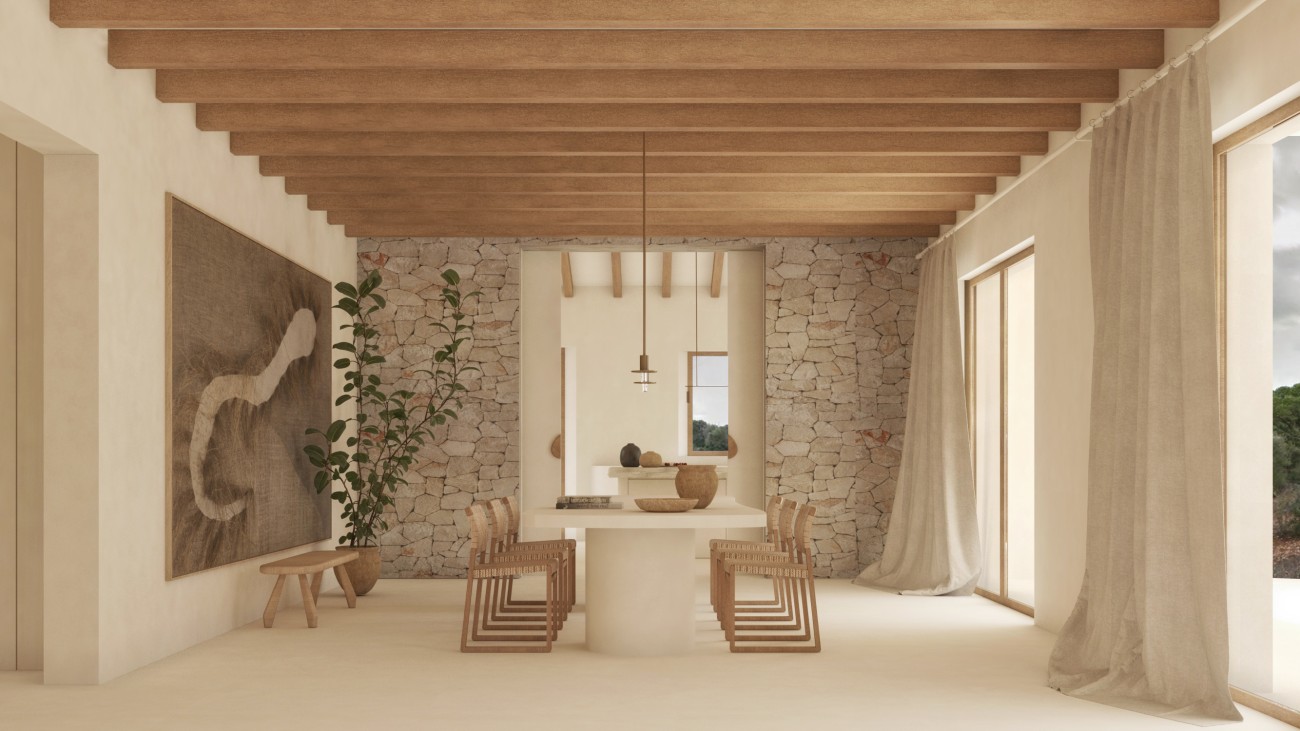 Dit charmante nieuwe landhuis te koop in Santanyí, biedt de perfecte mix van landelijke rust en dorpsgemak, gelegen op een royaal perceel van 18.379 m², op slechts een paar meter van het prachtige Mondragó Natuurpark.